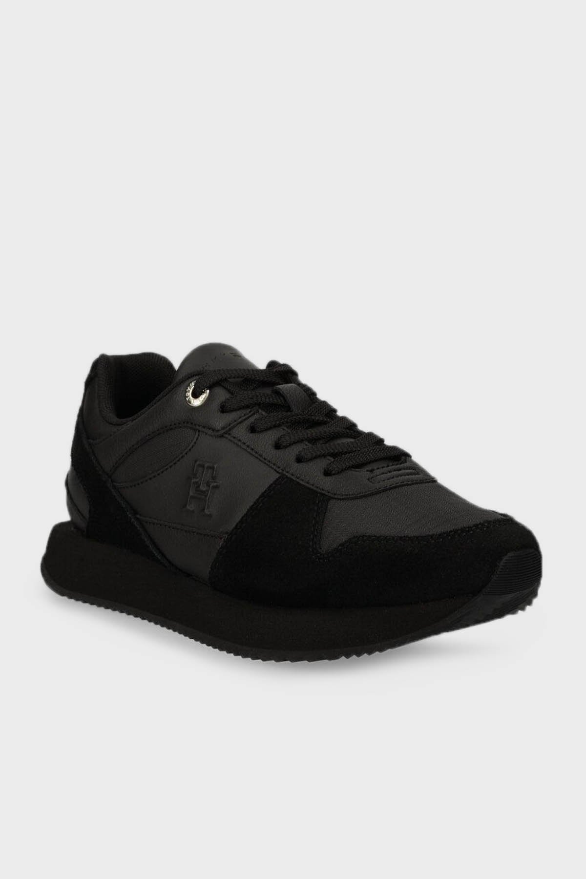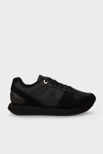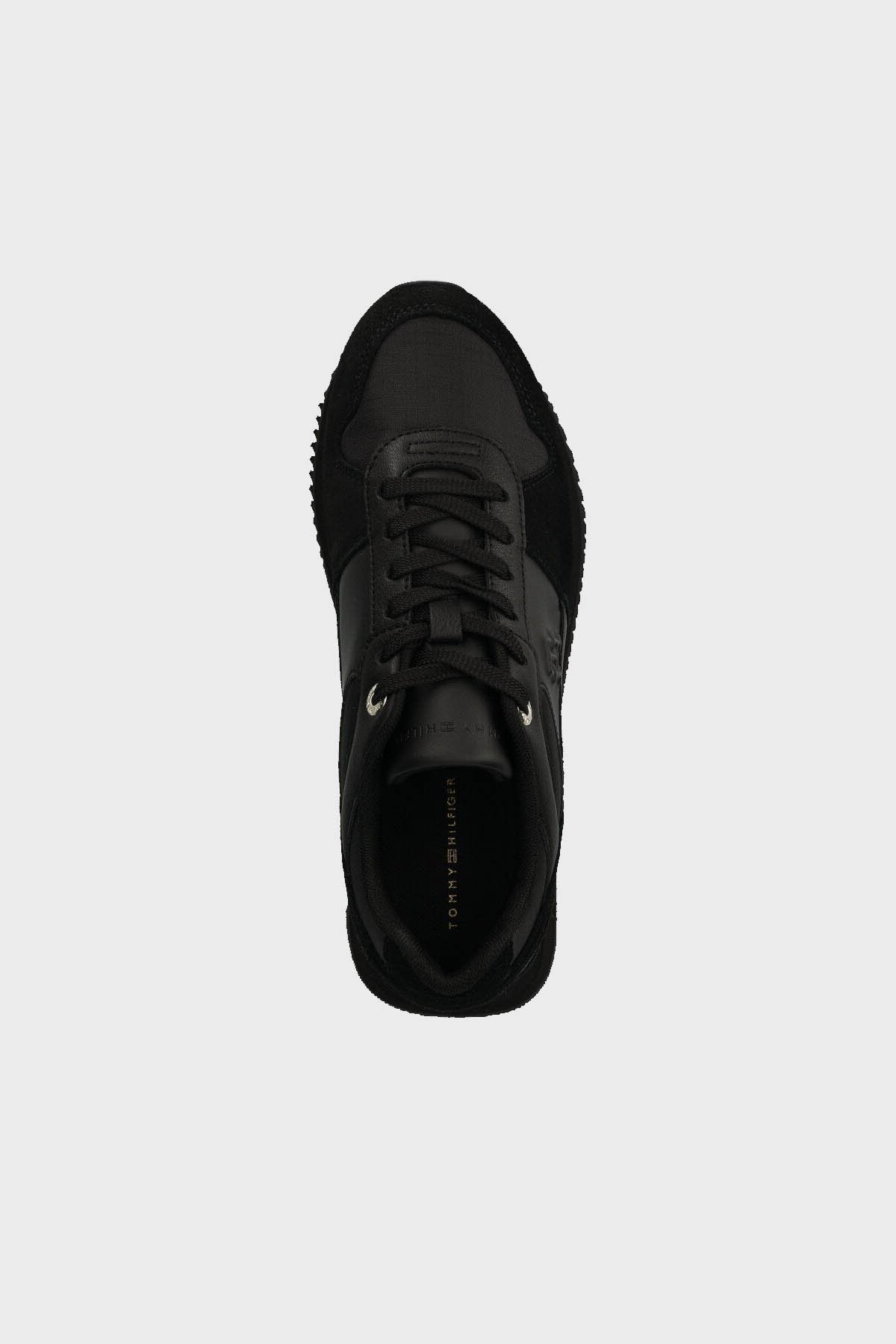 Hakiki Deri Logolu Kadife Parçalı Sneaker Bayan Ayakkabı FW0FW07585 BDS SİYAH