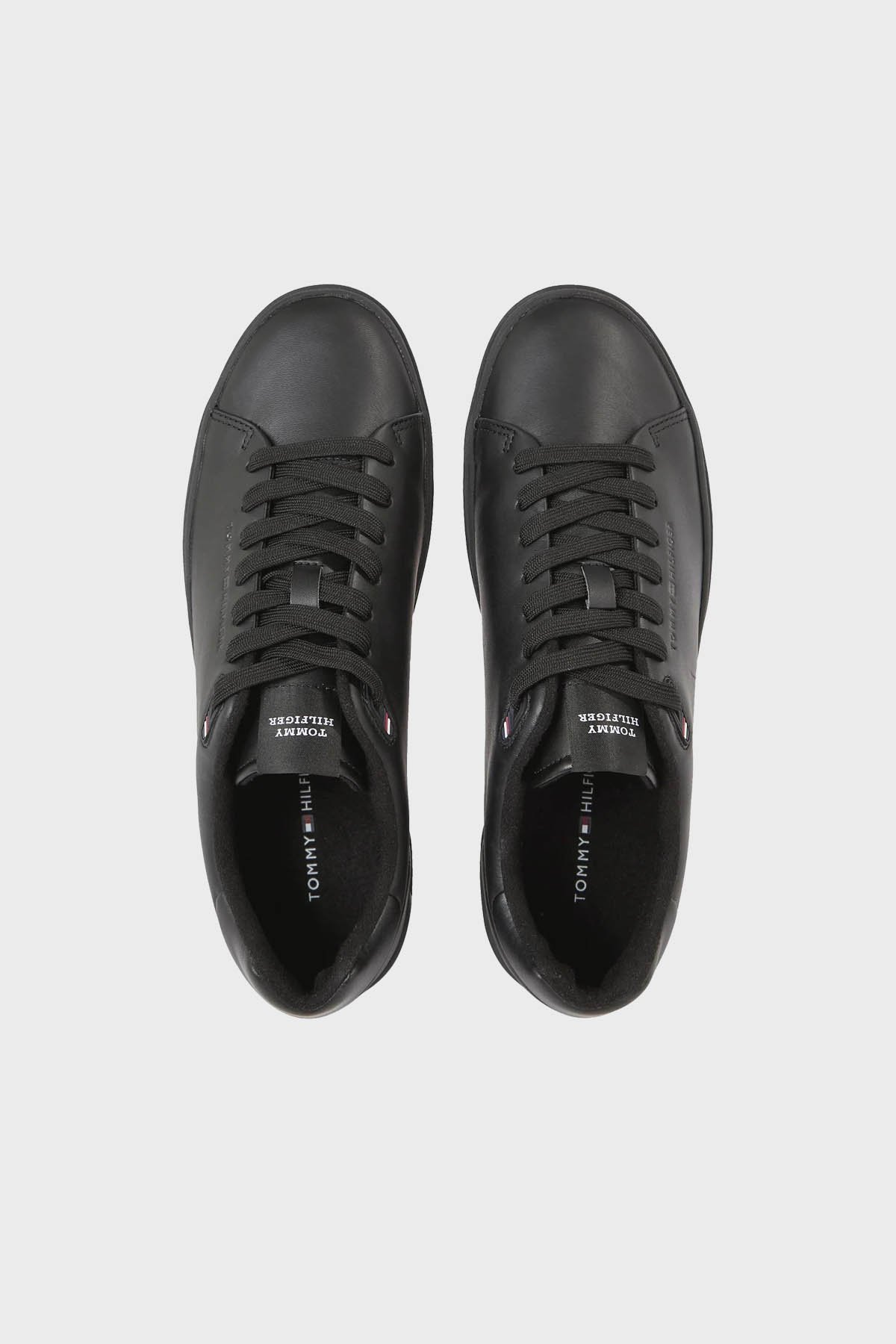 Hakiki Deri Logolu Sneaker Erkek Ayakkabı FM0FM04830 0GQ SİYAH