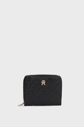Kabartma Logolu Fermuarlı Bayan Cüzdan AW0AW17743 BDS SİYAH