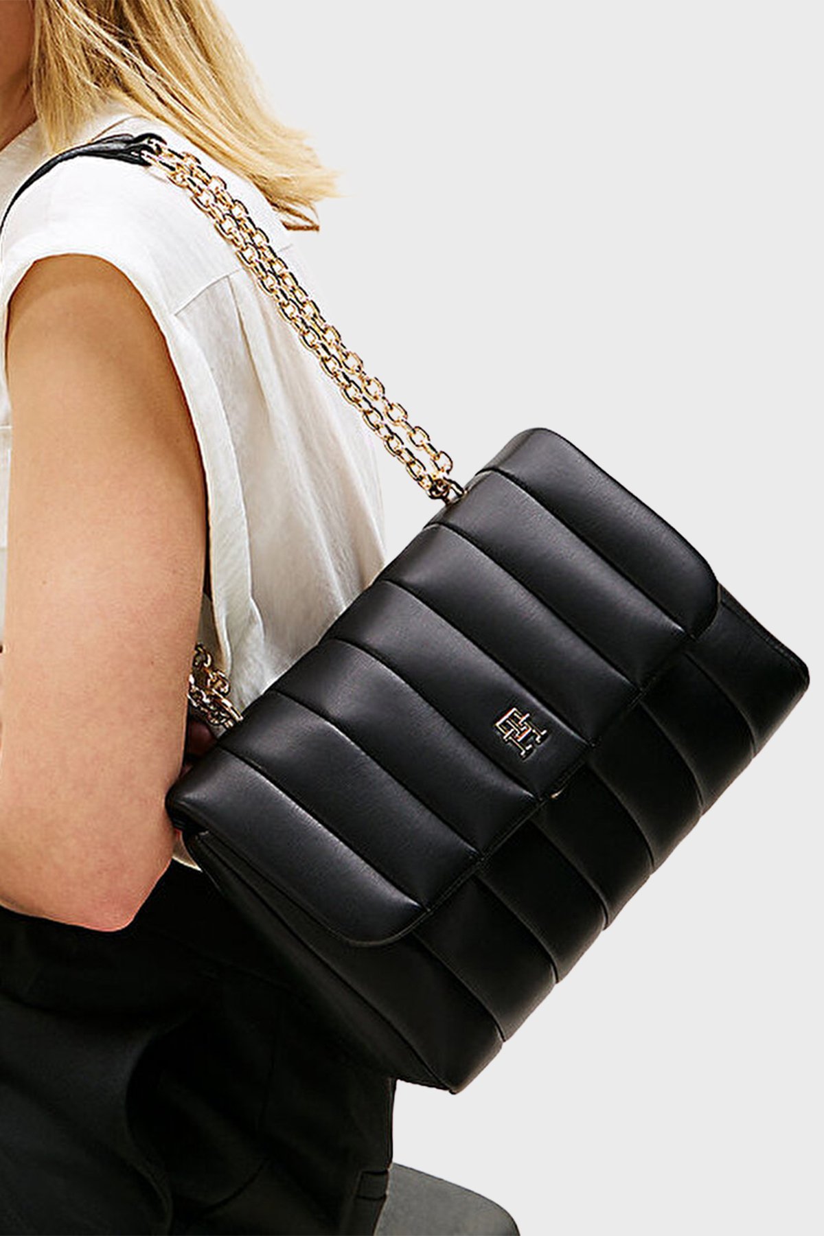 Kapitoneli Logolu Ayarlanabilir Zincir Askılı Bayan Çanta AW0AW17669 BDS SİYAH