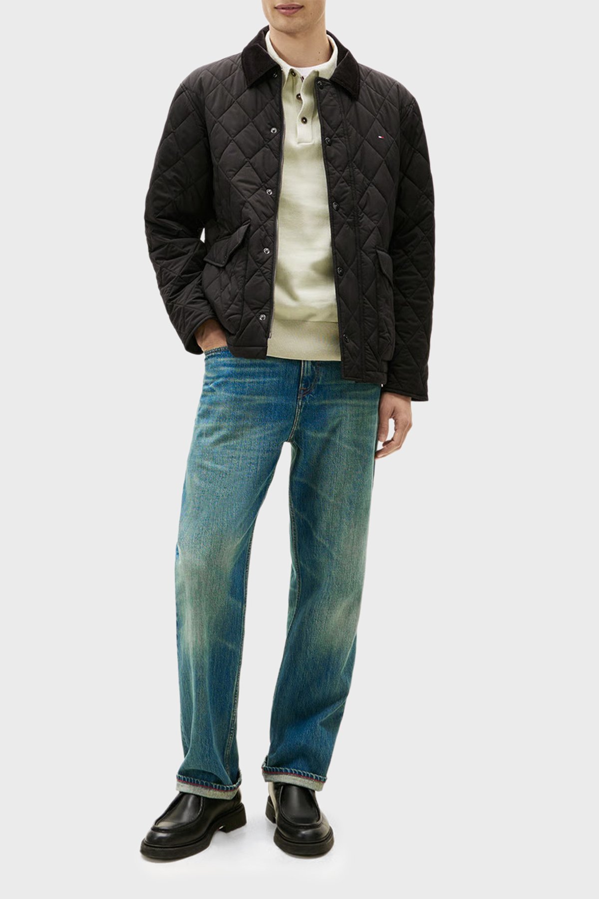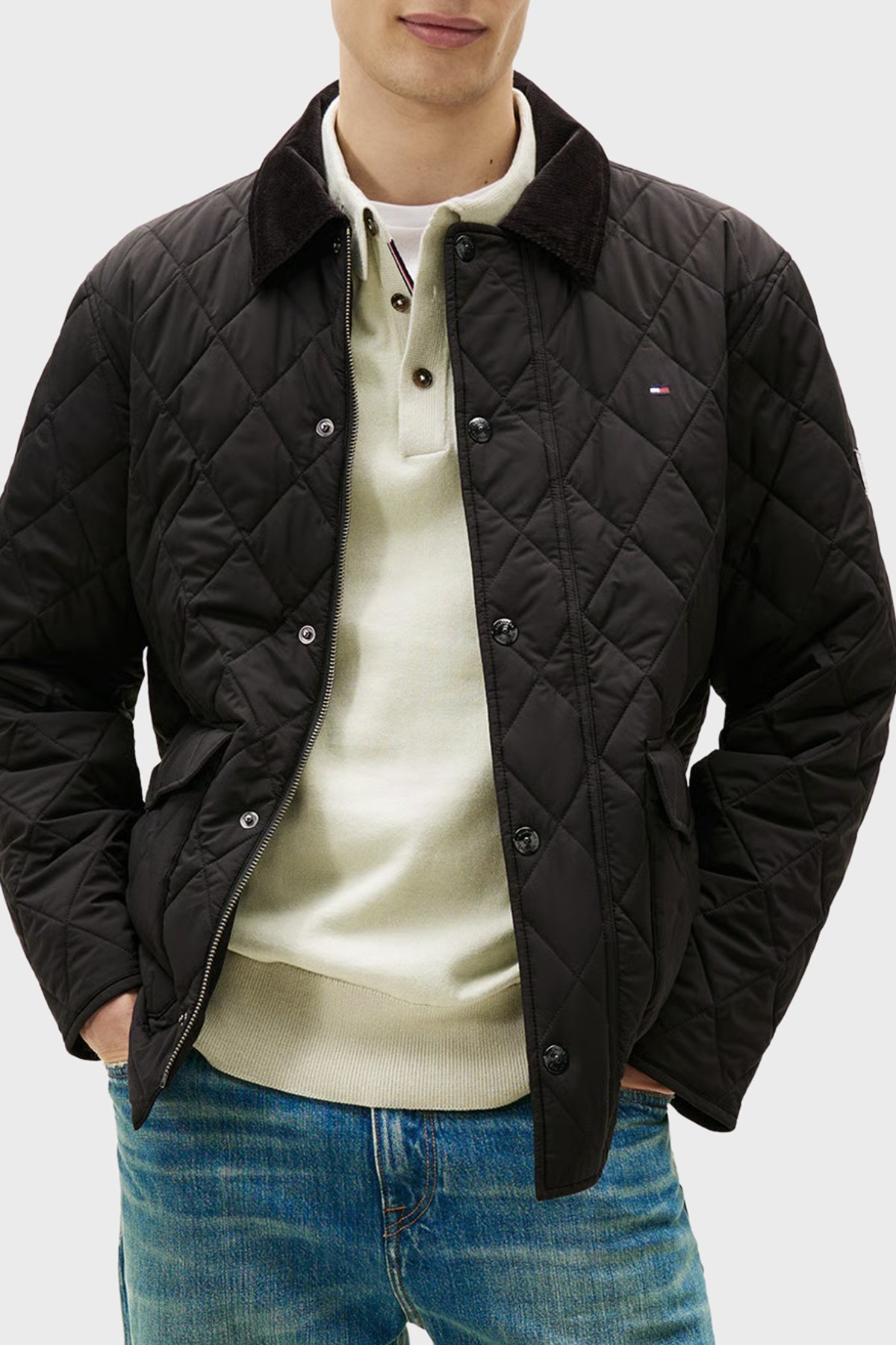 Kapitoneli Oversize Kadife Yaka Detaylı Erkek Mont MW0MW41768 BDS SİYAH