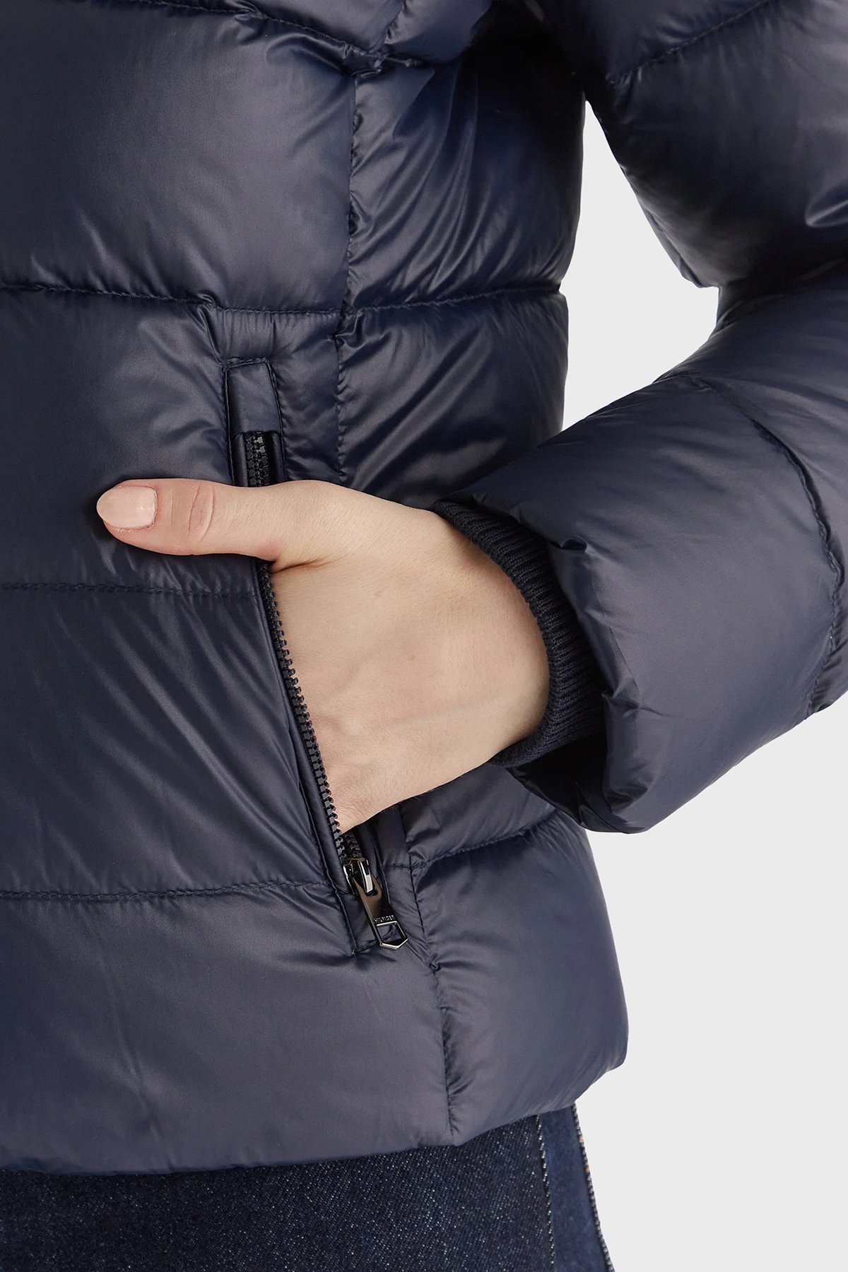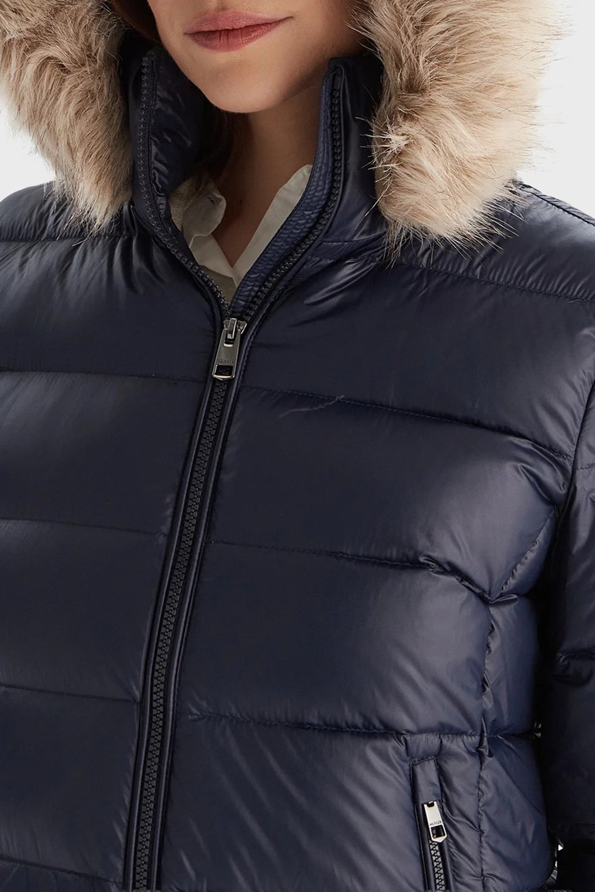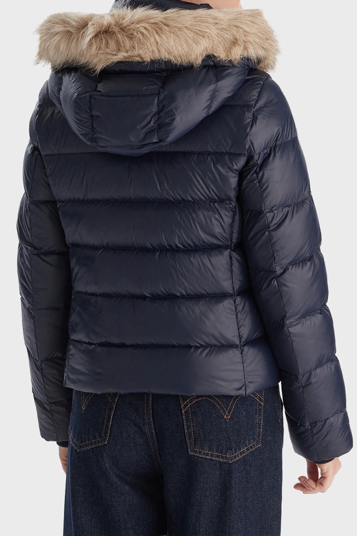 Kapitoneli Slim Fit Çıkarılabilir Kapüşonlu Su İtici Şişme Parlak Bayan Mont WW0WW47354 C1G LACİVERT