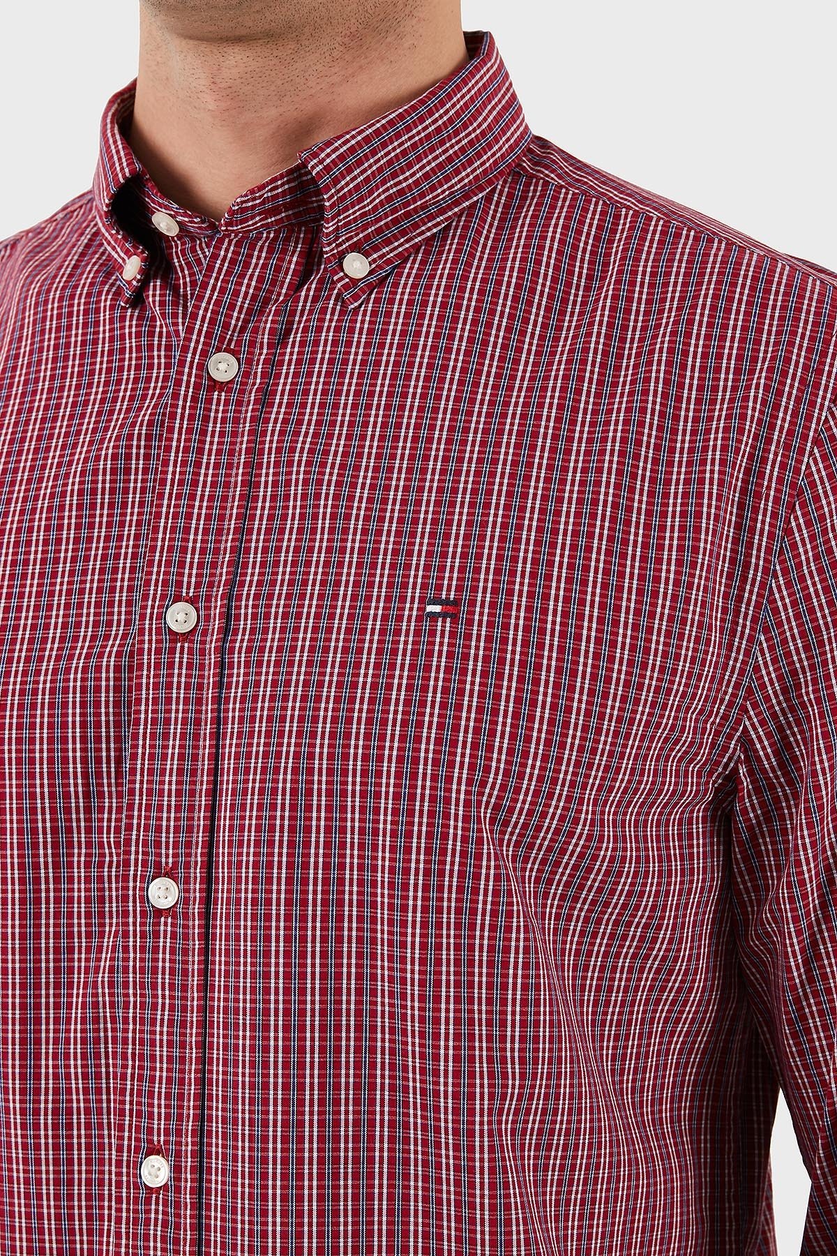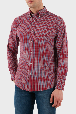 Kareli % 100 Pamuk Regular Fit Düğmeli Yaka Erkek Gömlek MW0MW37552 0QJ KIRMIZI