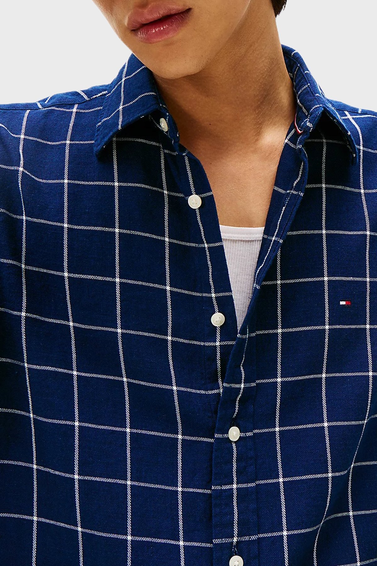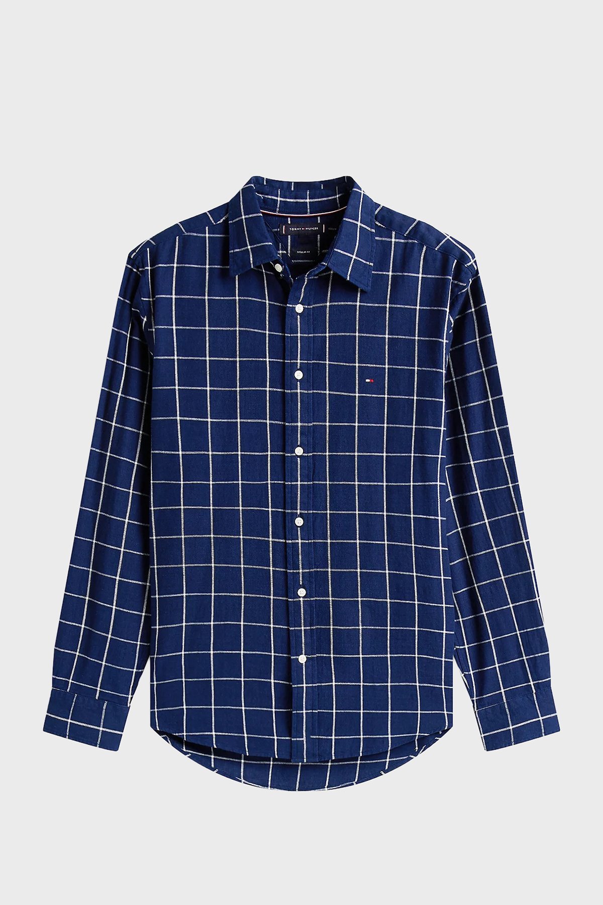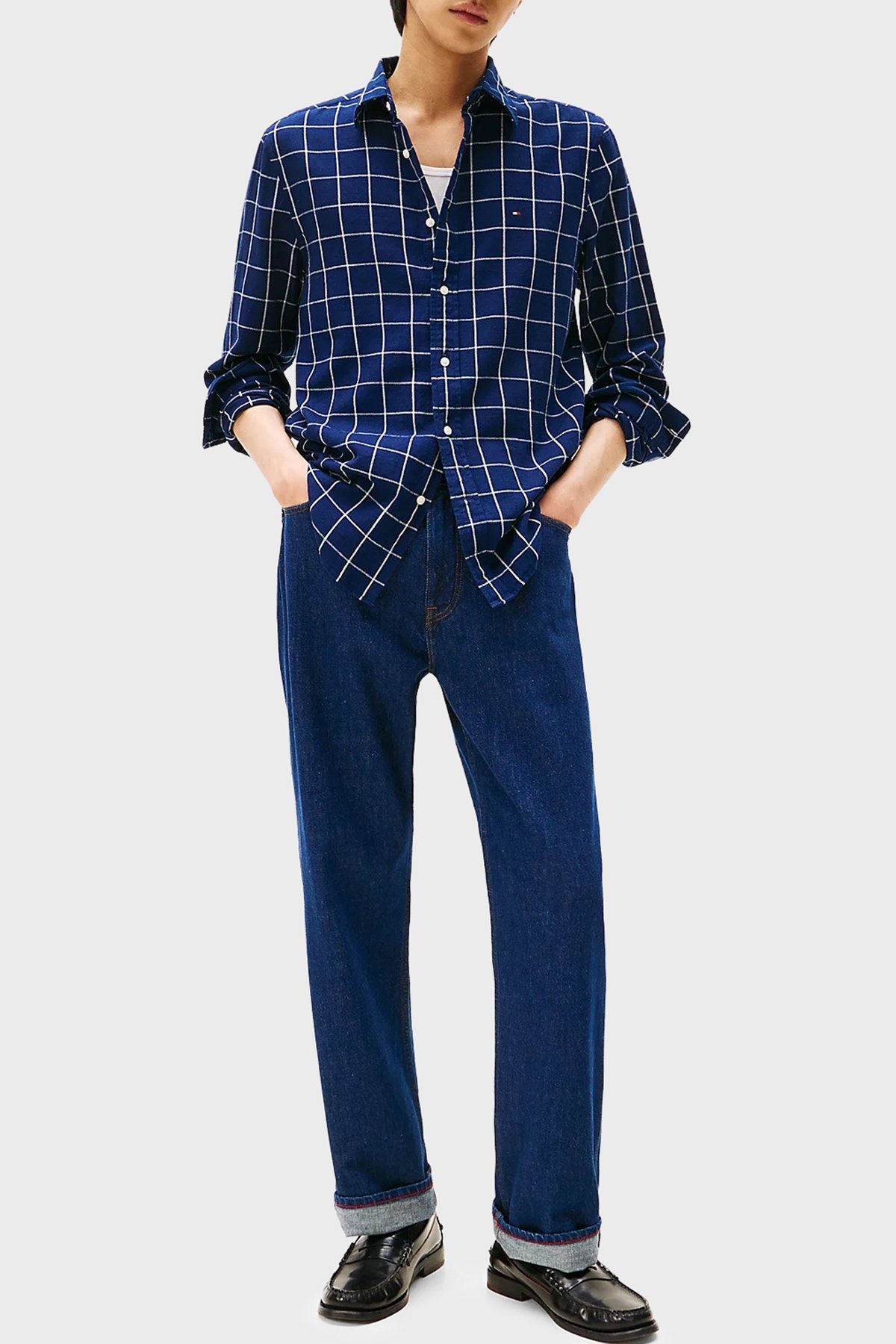 Kareli % 100 Pamuk Regular Fit Uzun Kollu Erkek Gömlek MW0MW40451 0MS LACİVERT-BEYAZ
