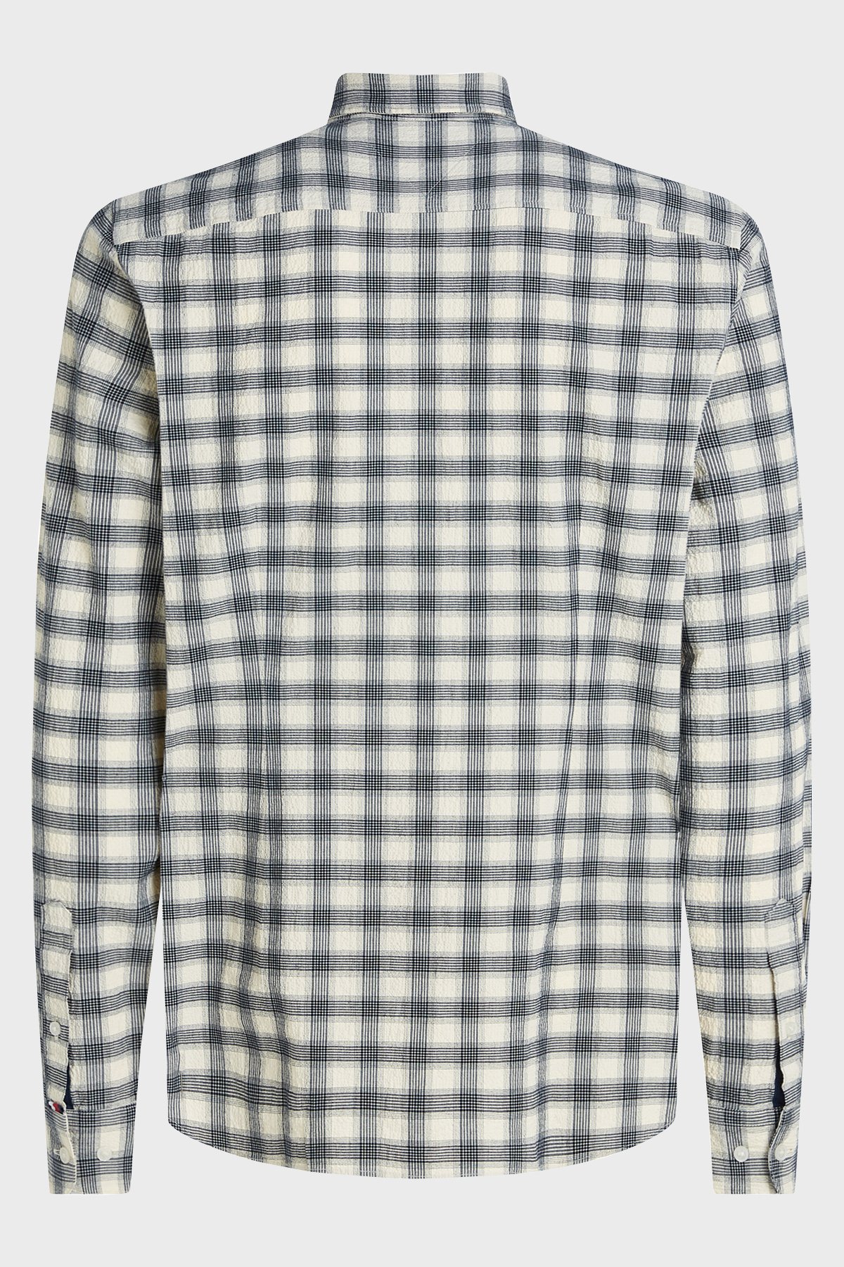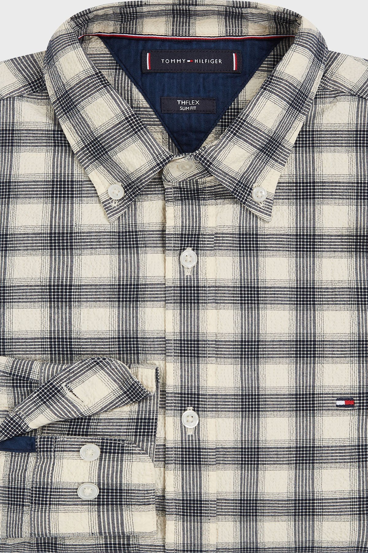 Kareli Pamuklu Düğmeli Yaka Slim Fit Erkek Gömlek MW0MW33770 0MT MAVİ