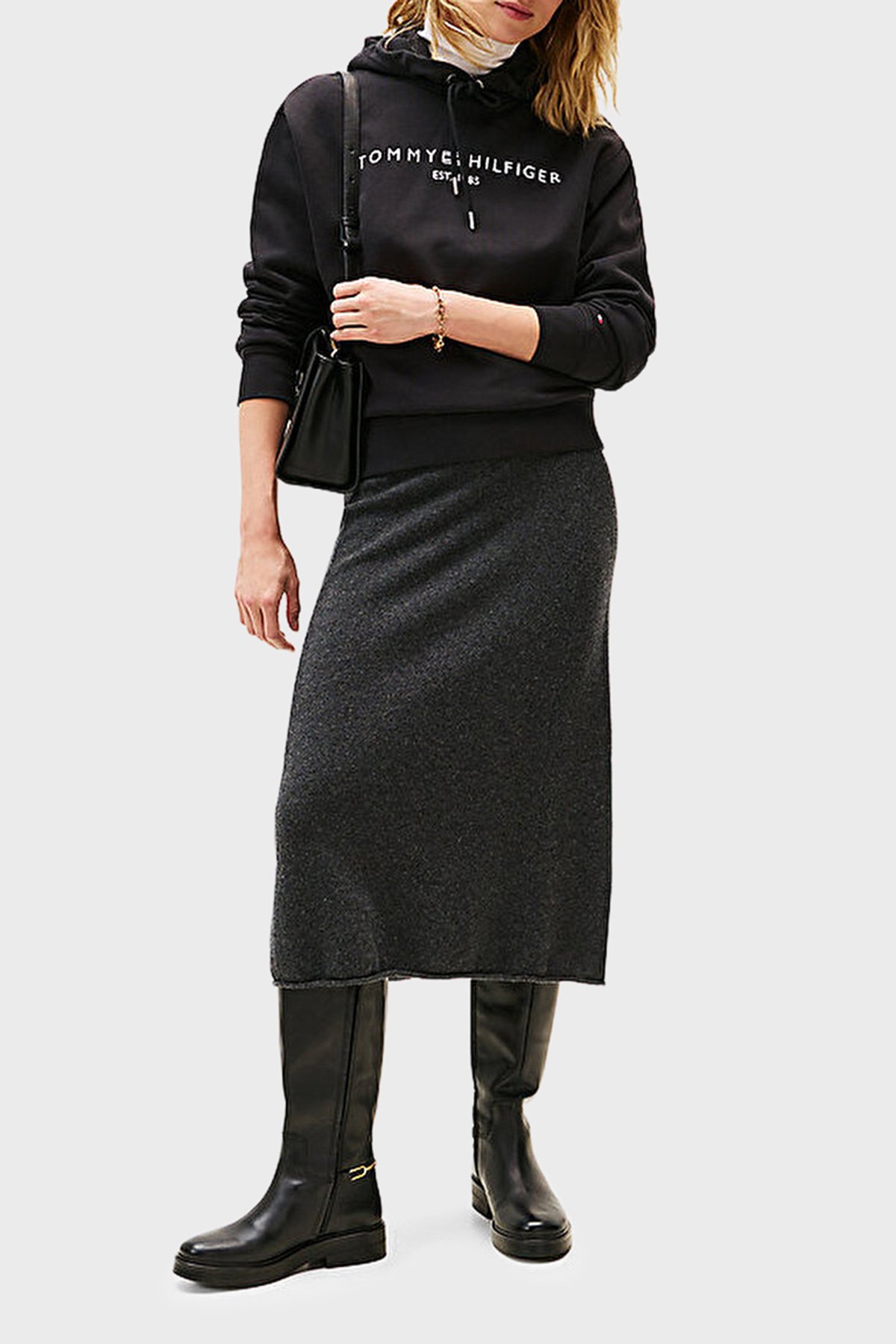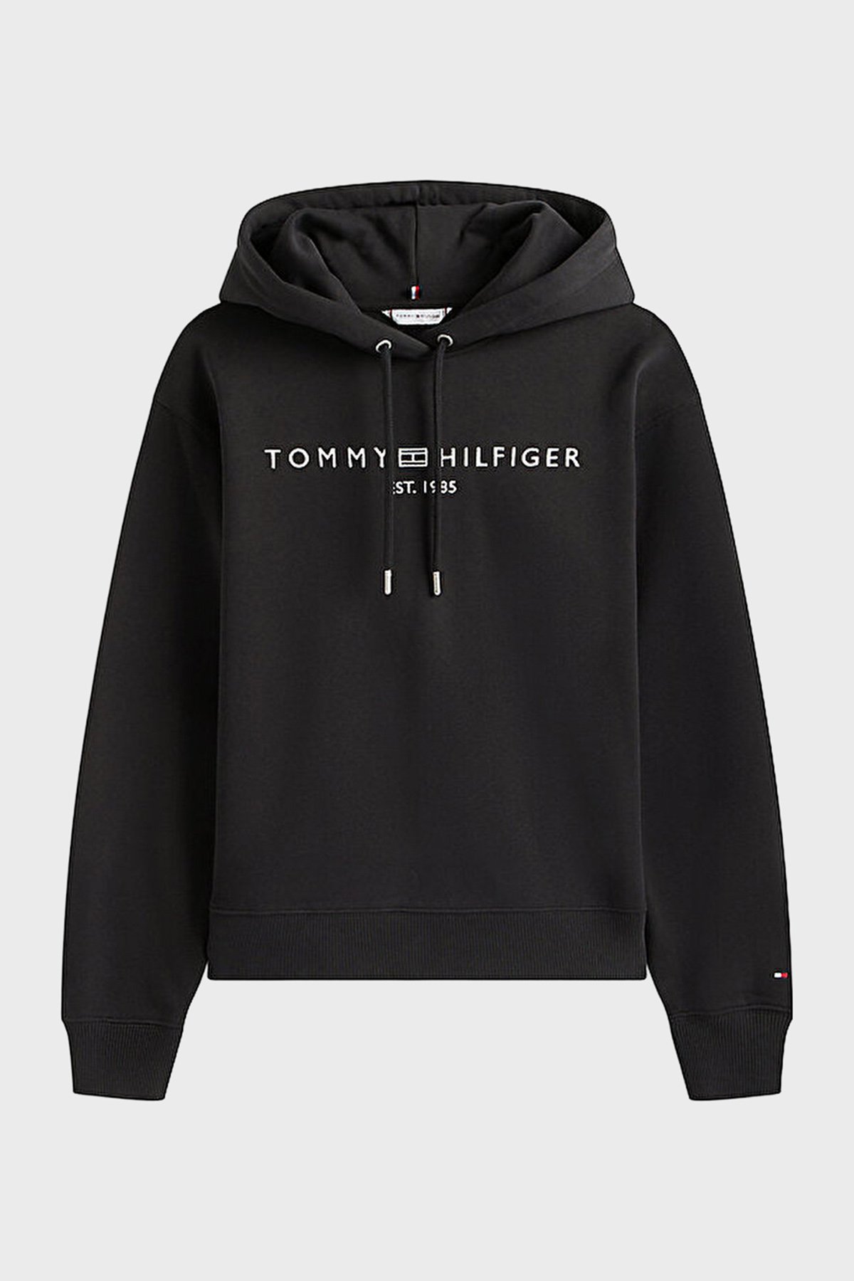 Logo İşlemeli Regular Fit Kapüşonlu Bayan Sweat WW0WW43598 BDS SİYAH