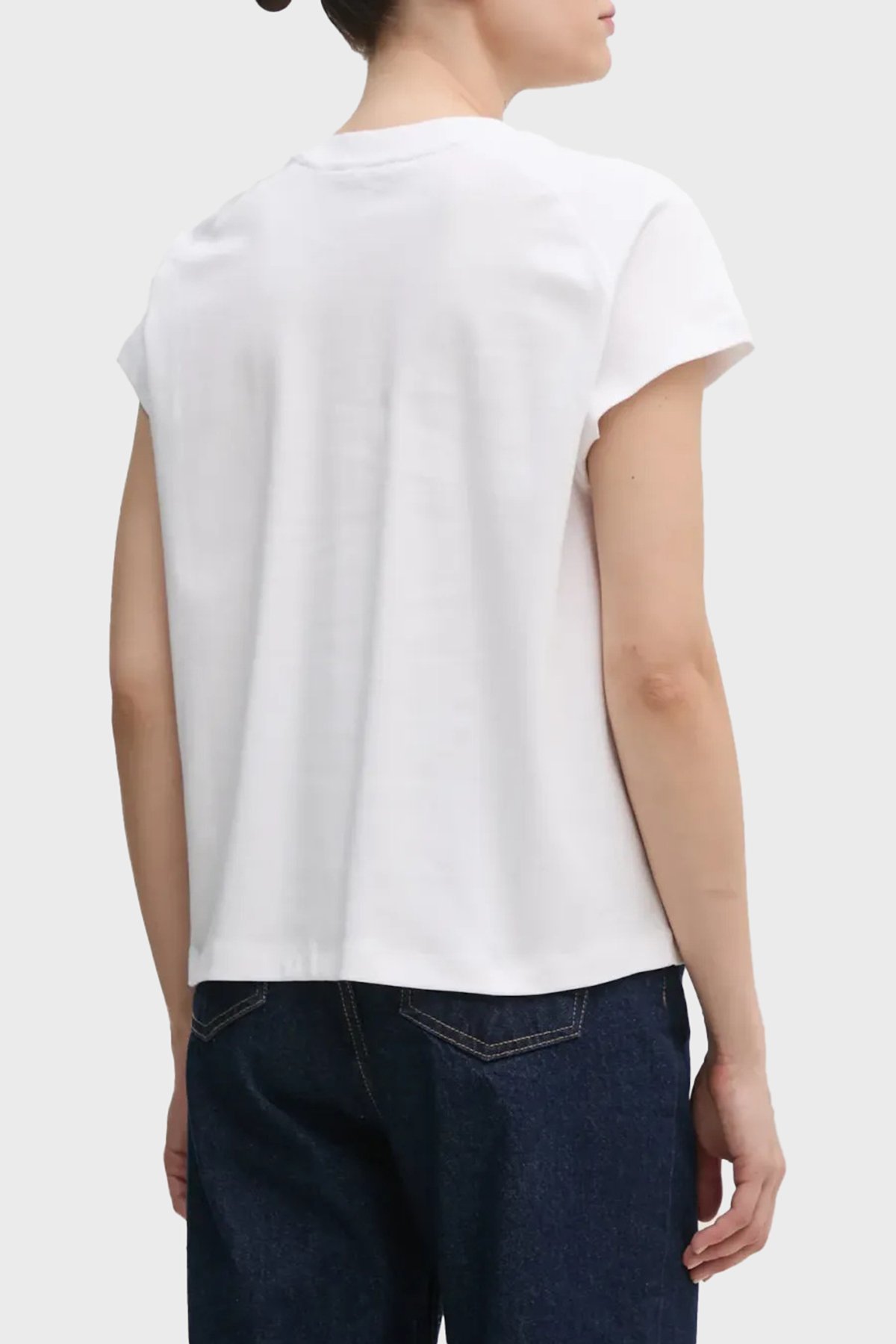 Logolu % 100 Pamuk Relaxed Fit Yuvarlak Yaka Bayan T Shirt WW0WW46113 YCF BEYAZ