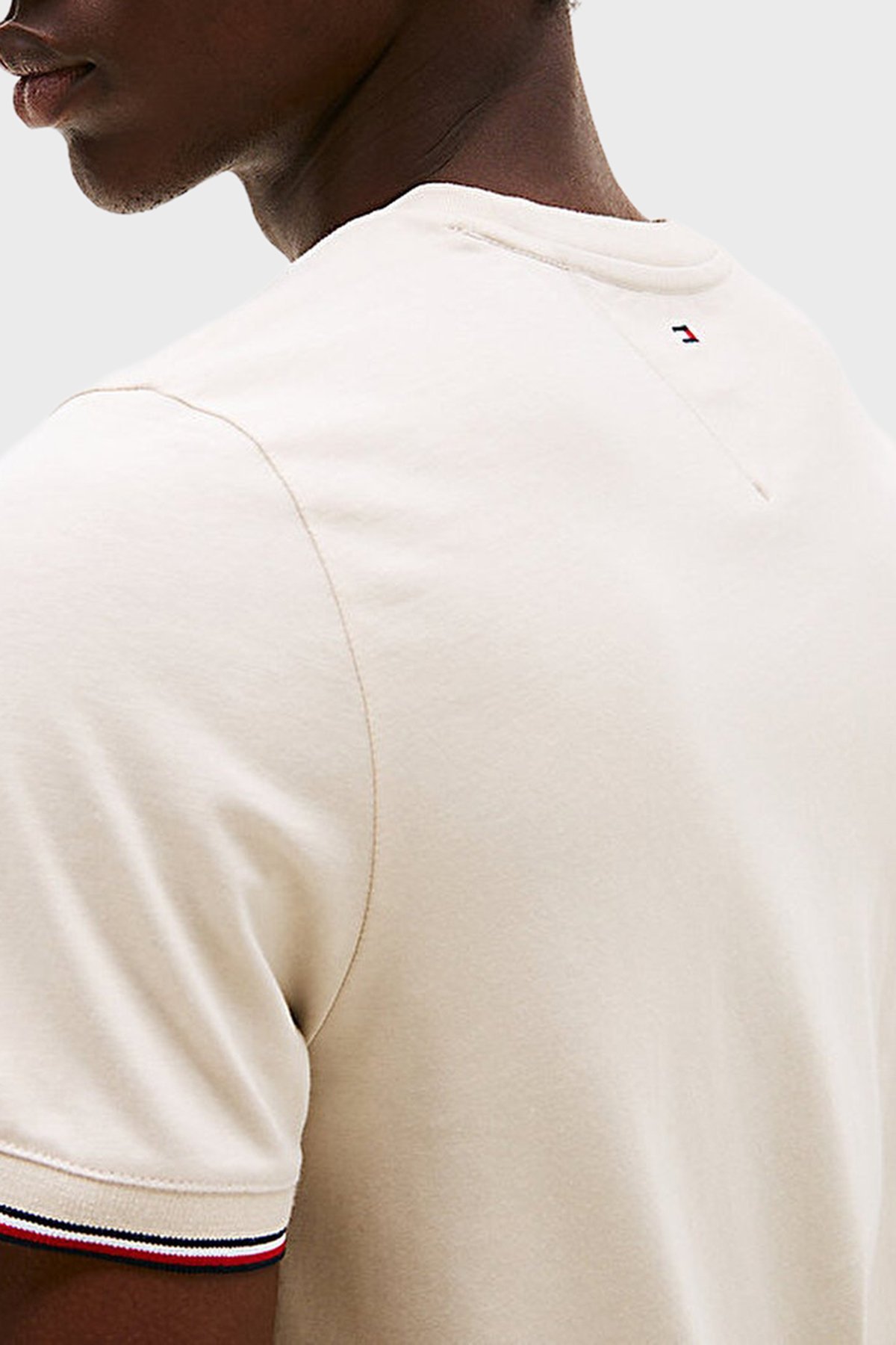 Logolu % 100 Pamuk Slim Fit Bisiklet Yaka Erkek T Shirt MW0MW32584 ACG BEJ