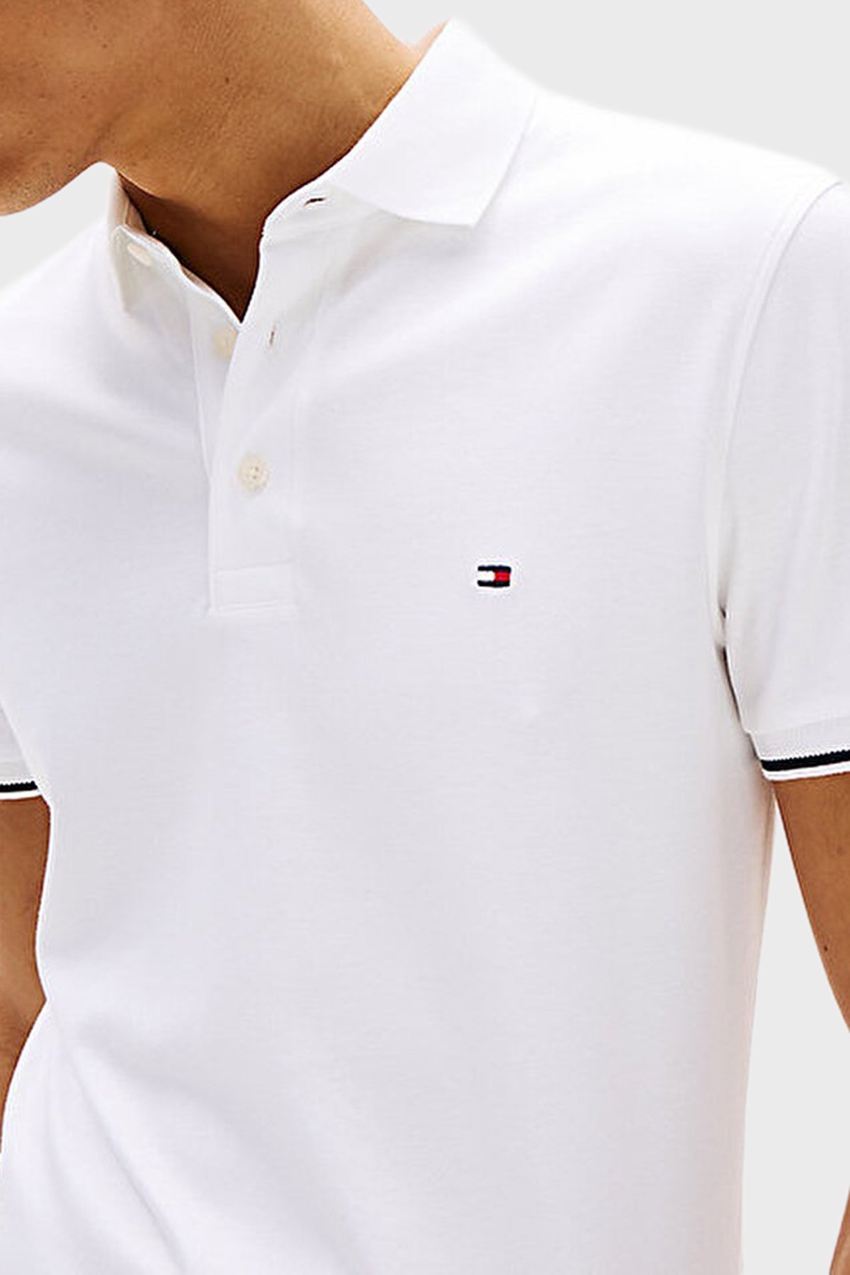 Logolu % 100 Pamuk Slim Fit Düğmeli Erkek Polo Yaka T Shirt MW0MW39348 YBR BEYAZ
