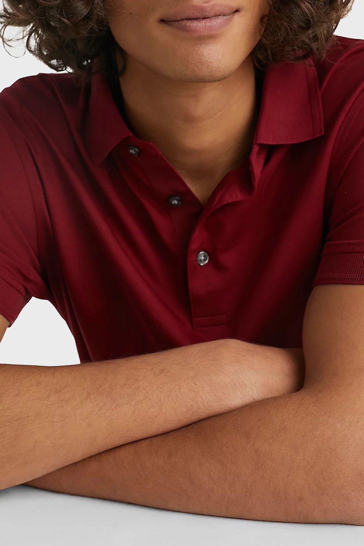 Logolu % 100 Pamuk Slim Fit Erkek Polo T Shirt MW0MW30758 XJS BORDO