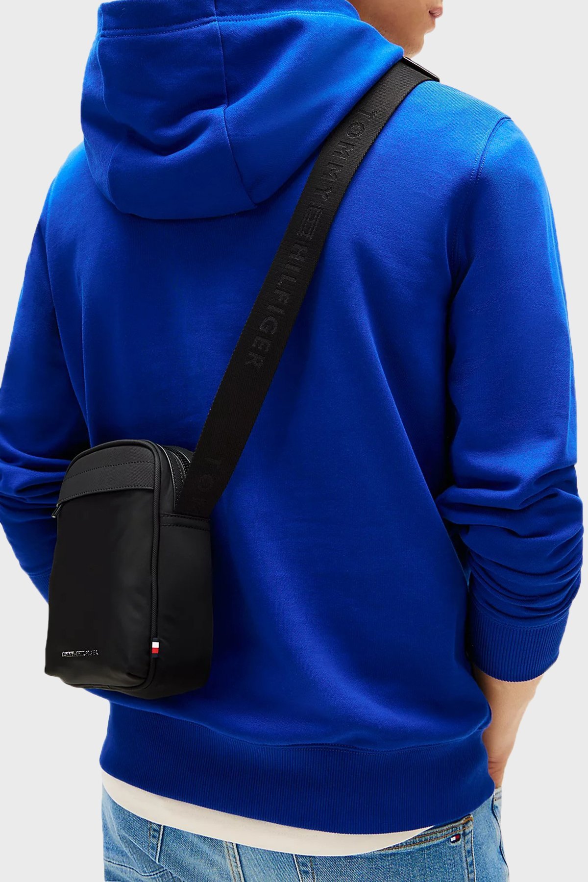 Logolu Ayarlanabilir Askılı Fermuarlı Erkek Çanta AM0AM13185 BDS SİYAH