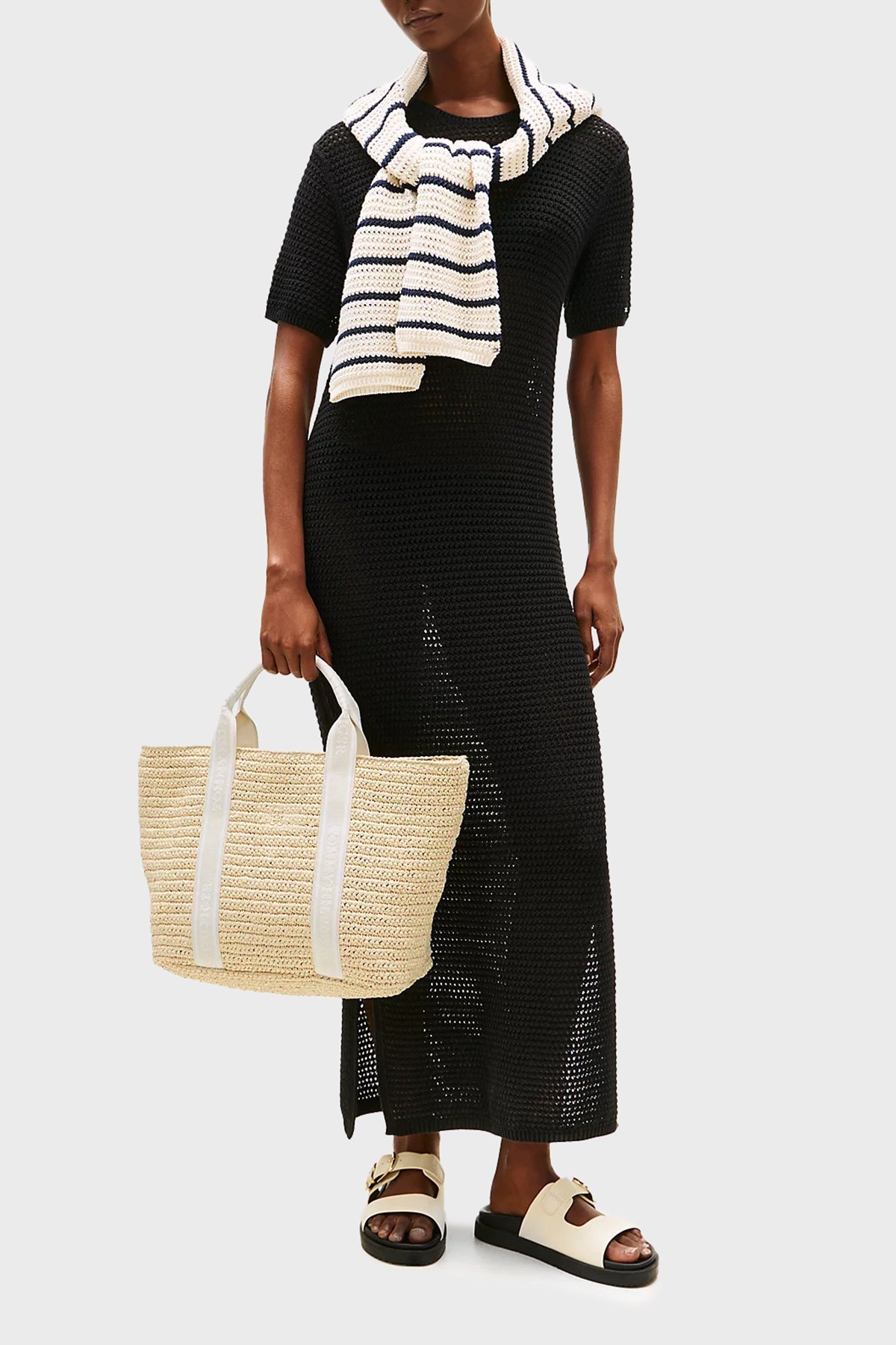Logolu Çıkarılabilir Askılı Büyük Hasır Bayan Çanta AW0AW17196 AA8 BEJ