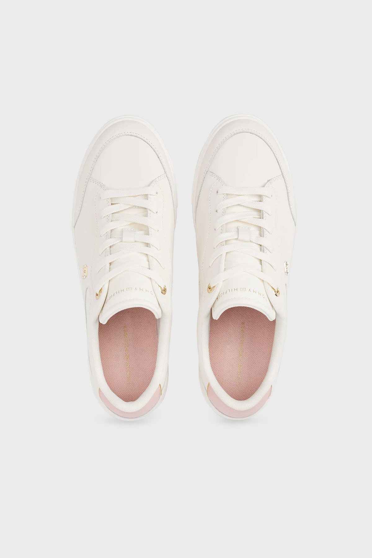 Logolu Deri Sneaker Bayan Ayakkabı FW0FW08322 YBH BEYAZ