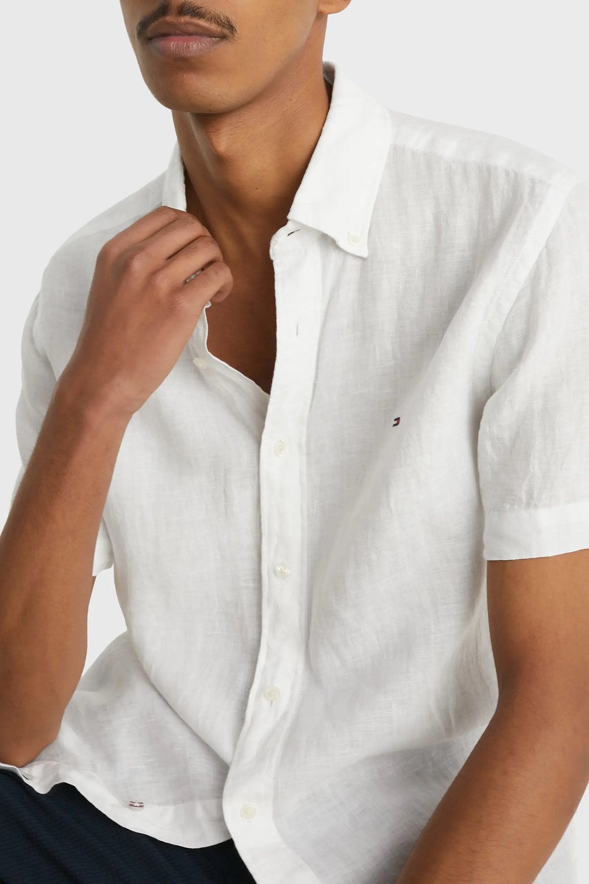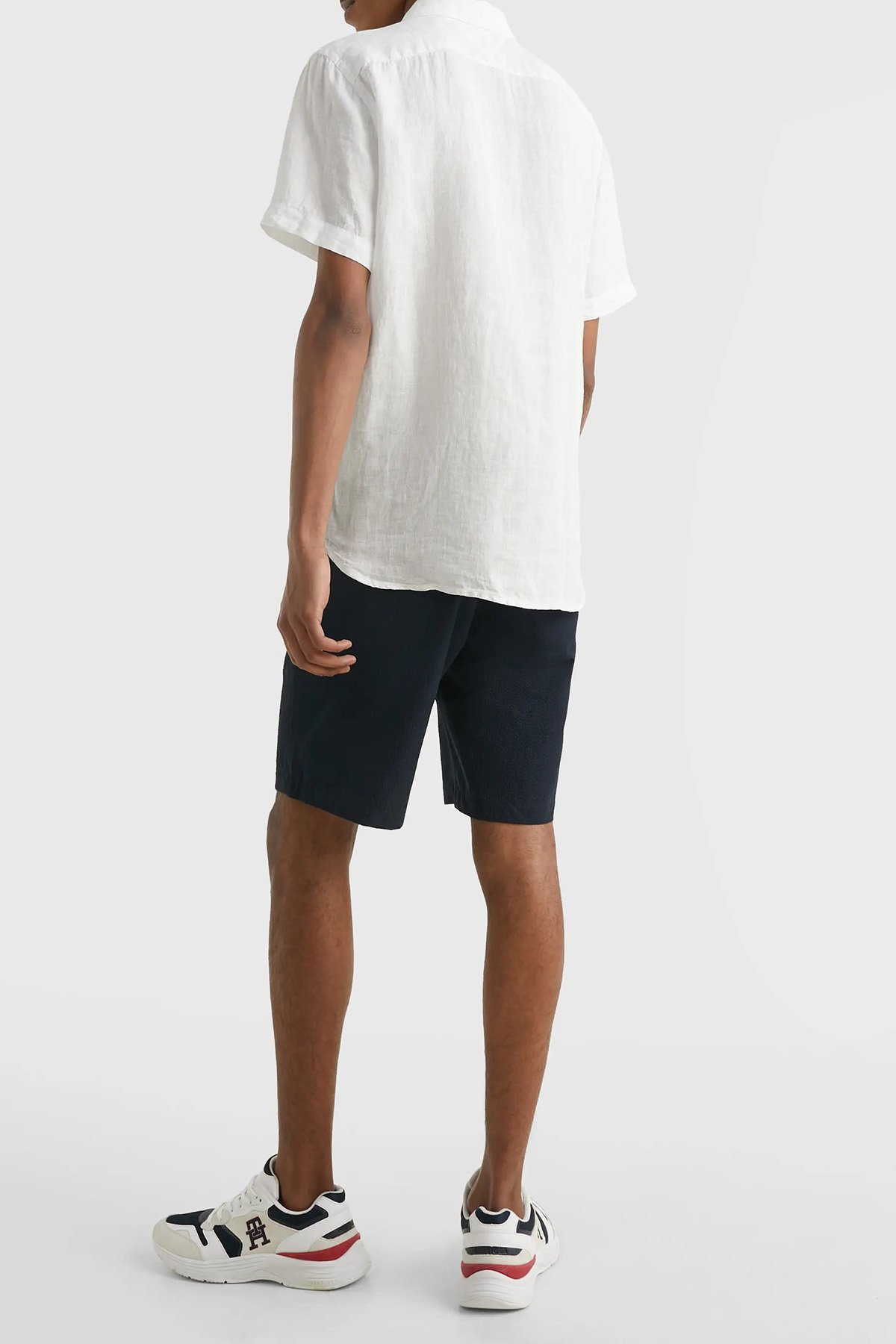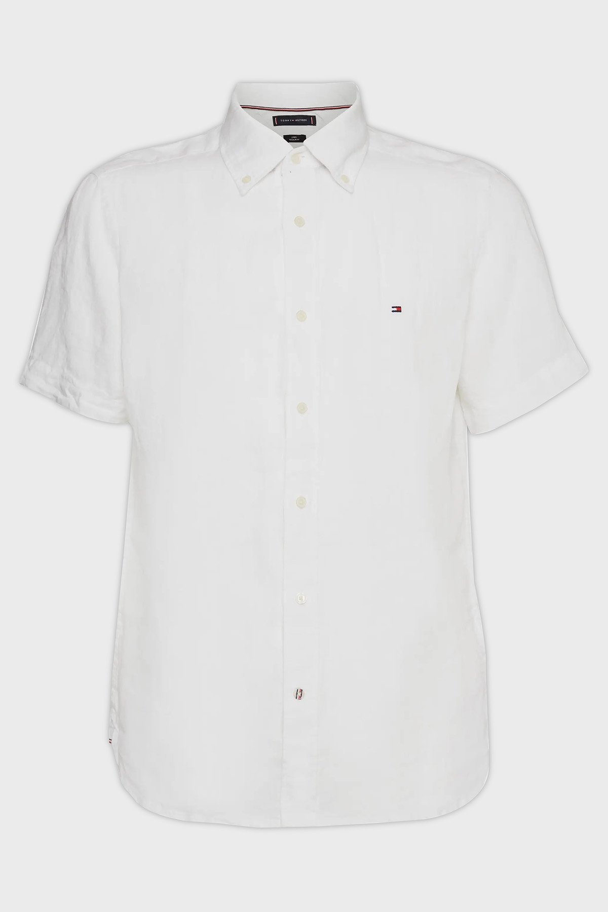 Logolu Düğmeli Yaka Kısa Kollu Regular Fit % 100 Keten Erkek Gömlek MW0MW30916 YCF BEYAZ