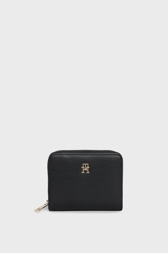 Logolu Fermuar ve Çıtçıt Düğmeli Bayan Cüzdan AW0AW17742 BDS SİYAH