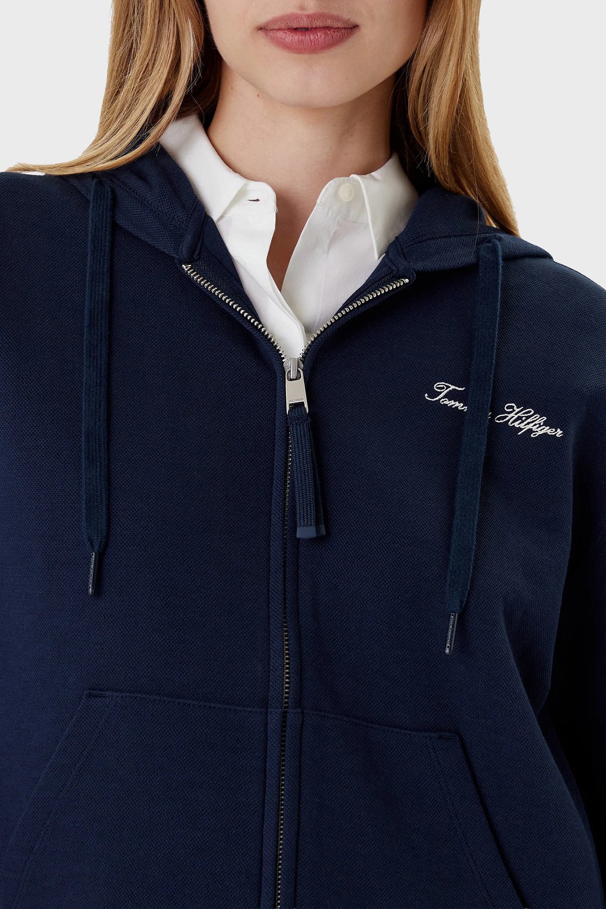Logolu Pamuklu Regular Fit Kapüşonlu Crop Bayan Sweat WW0WW45742 C1G LACİVERT