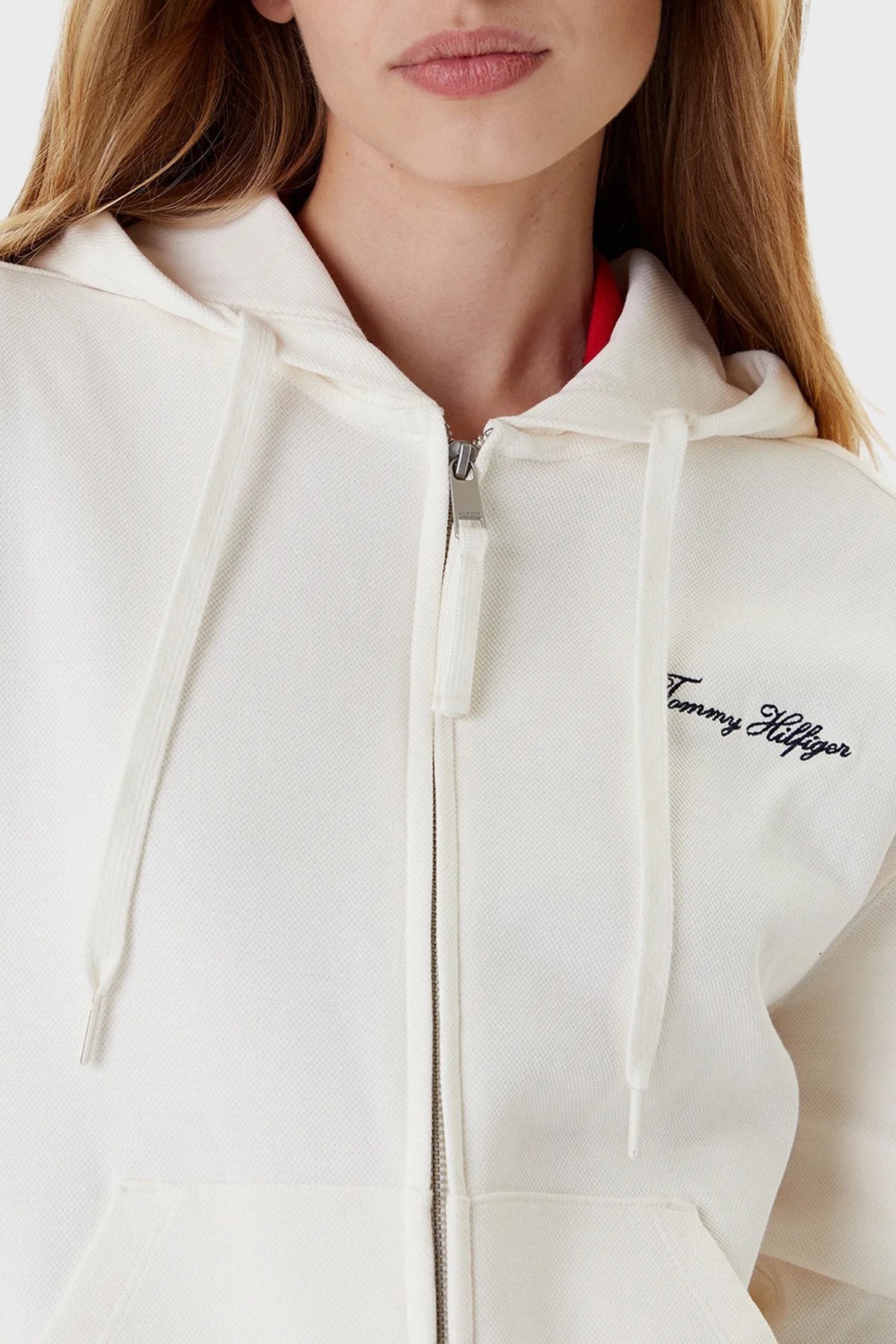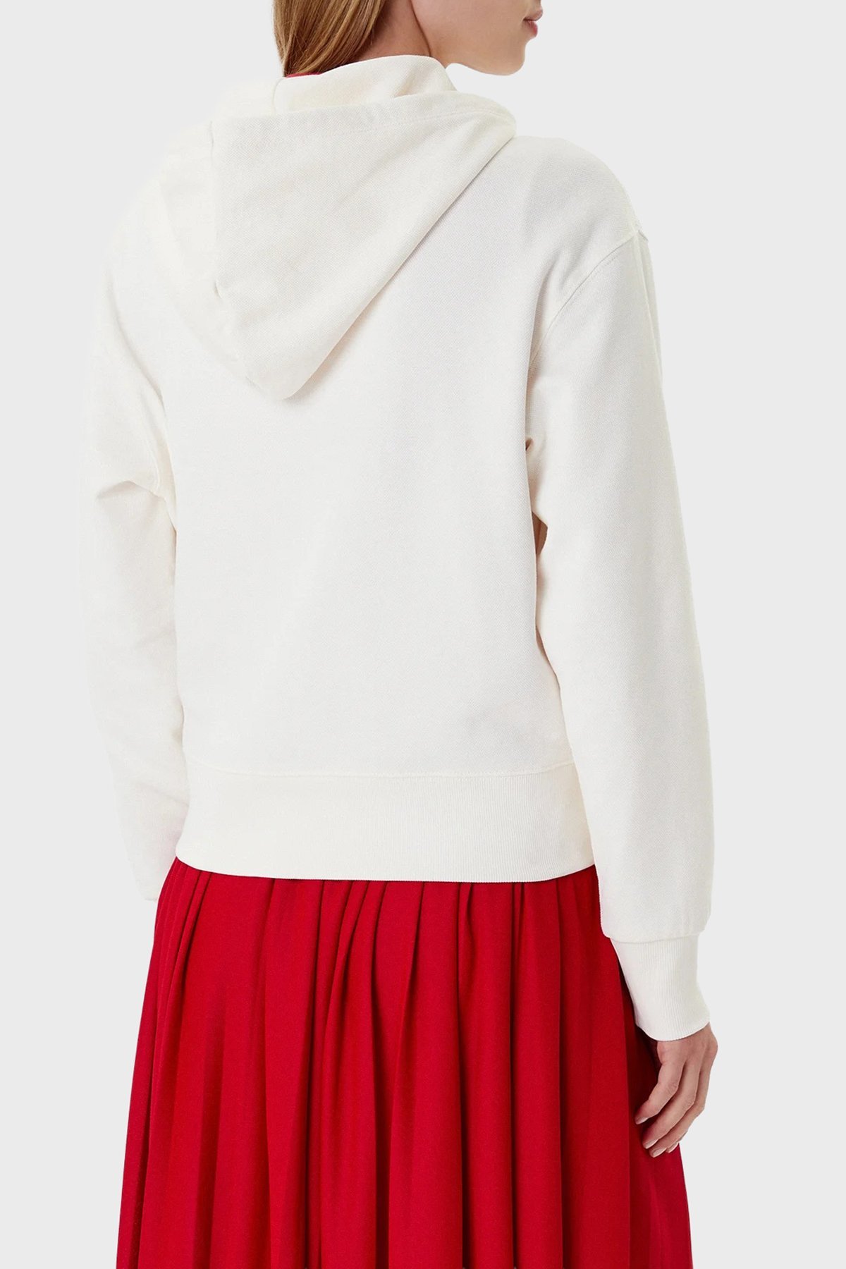 Logolu Pamuklu Regular Fit Kapüşonlu Crop Bayan Sweat WW0WW45742 YA8 BEYAZ