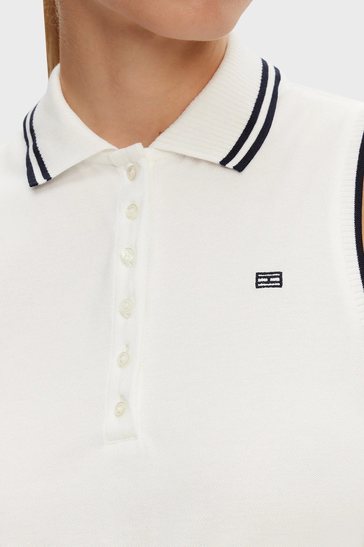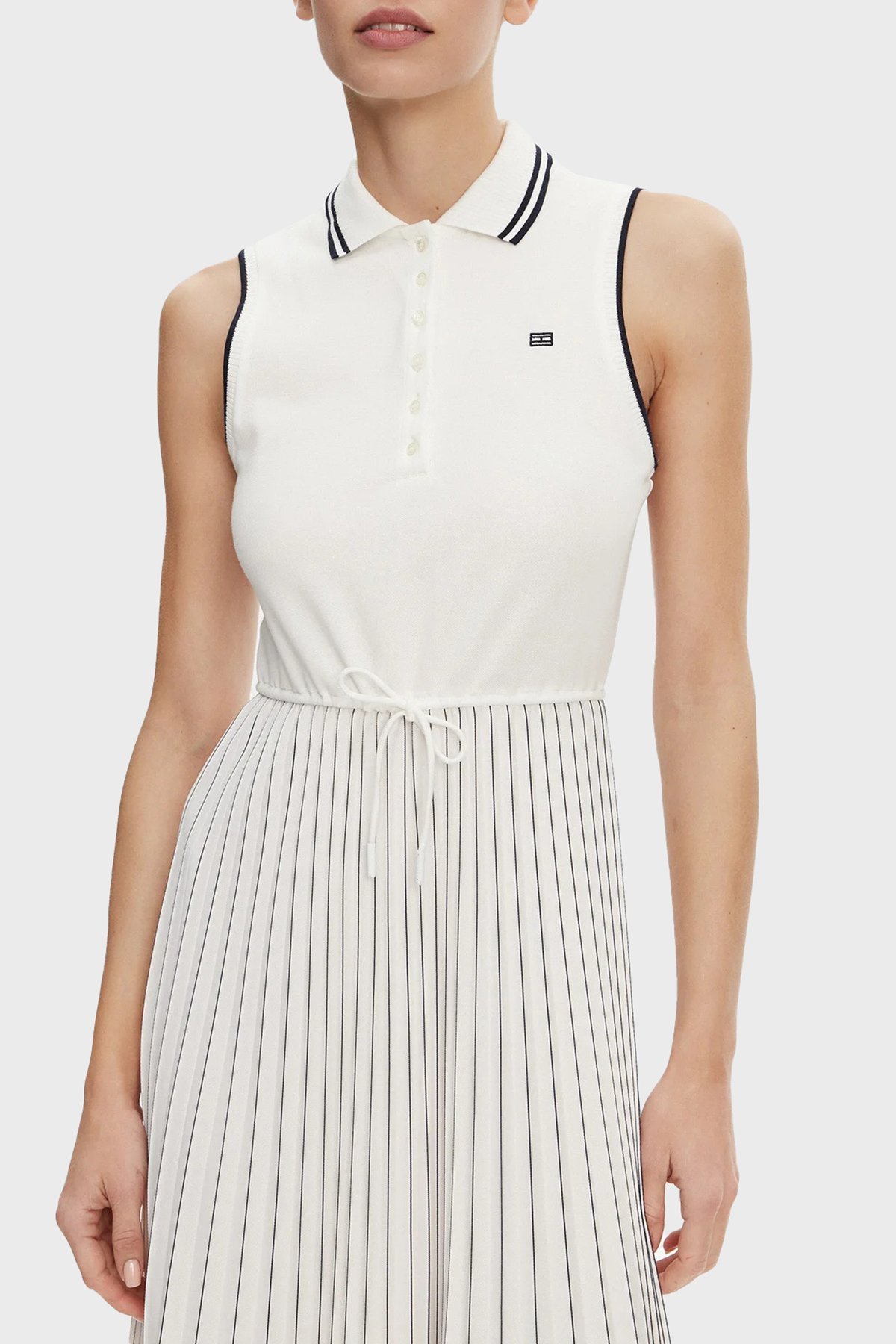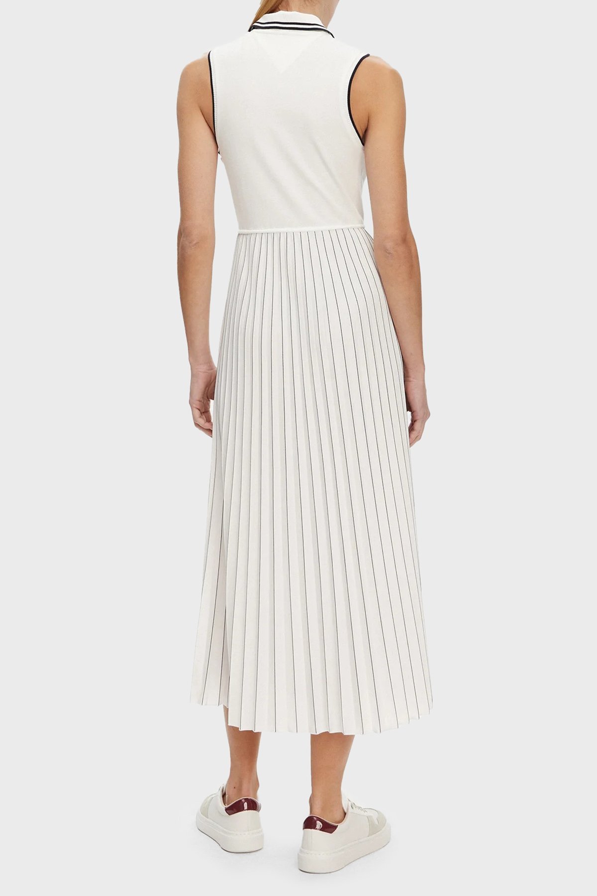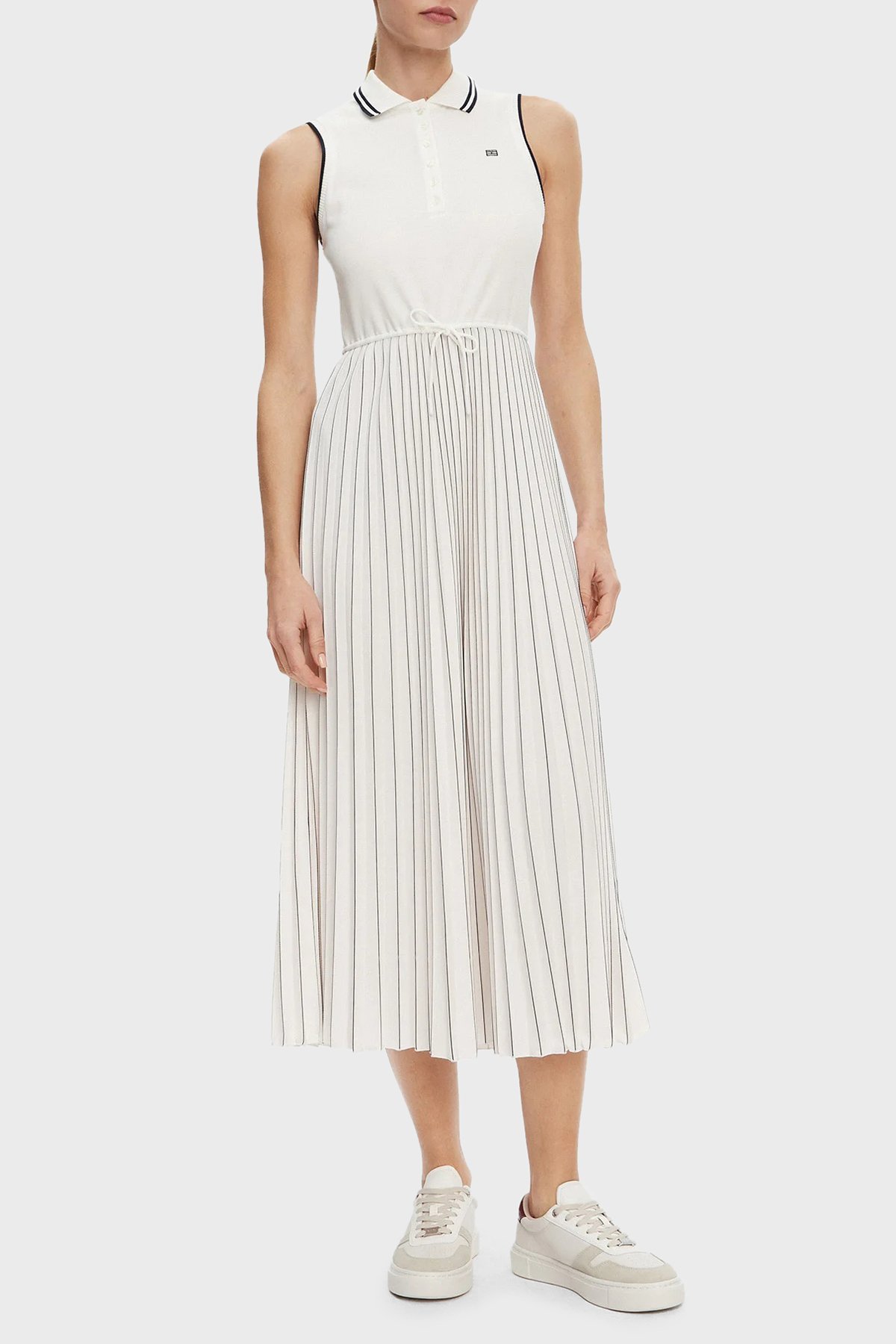 Logolu Pile Detaylı Regular Fit Maxi Boy Polo Yaka Bayan Elbise WW0WW45167 YBL BEYAZ