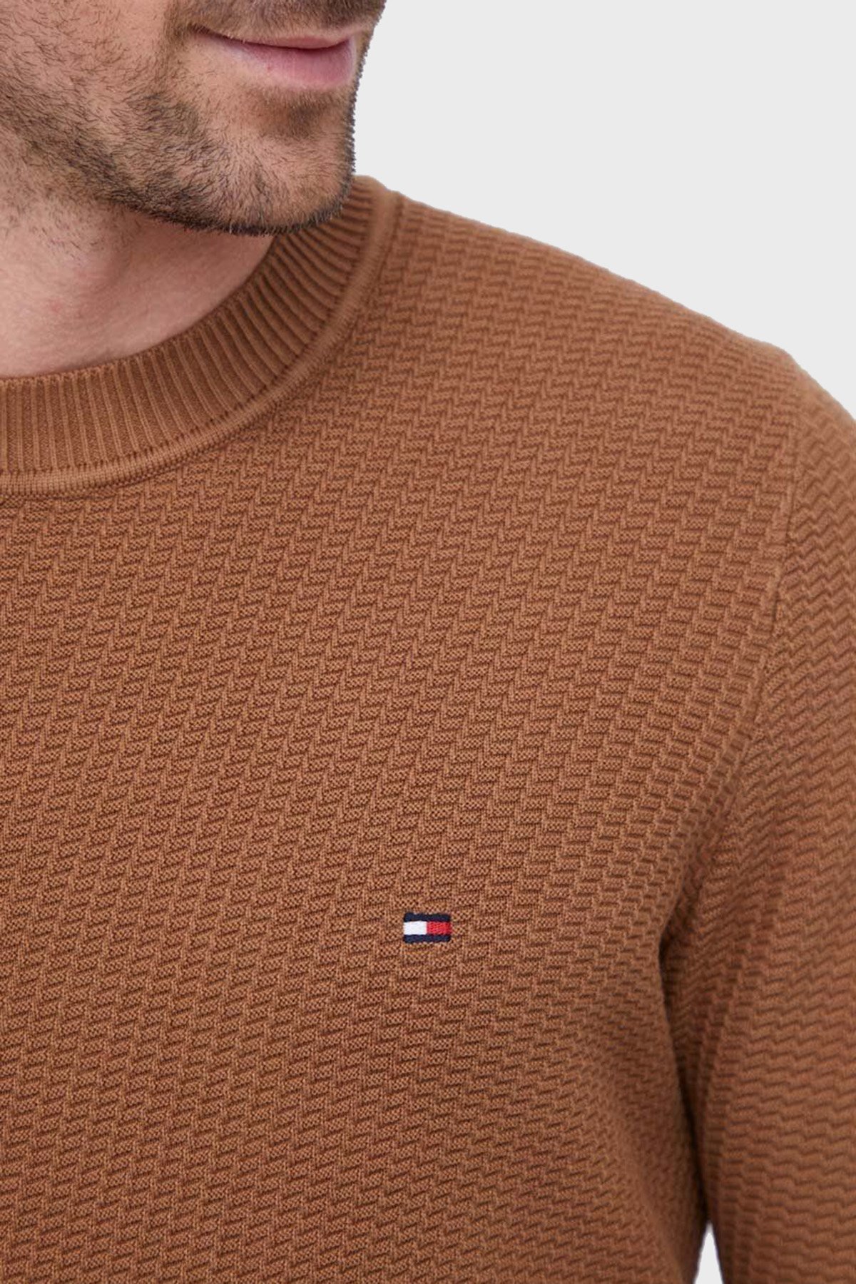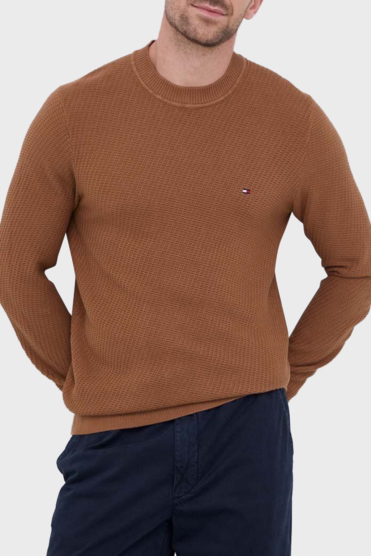 Organik Pamuklu Regular Fit Bisiklet Yaka Erkek Kazak MW0MW33131 GWJ KAHVE