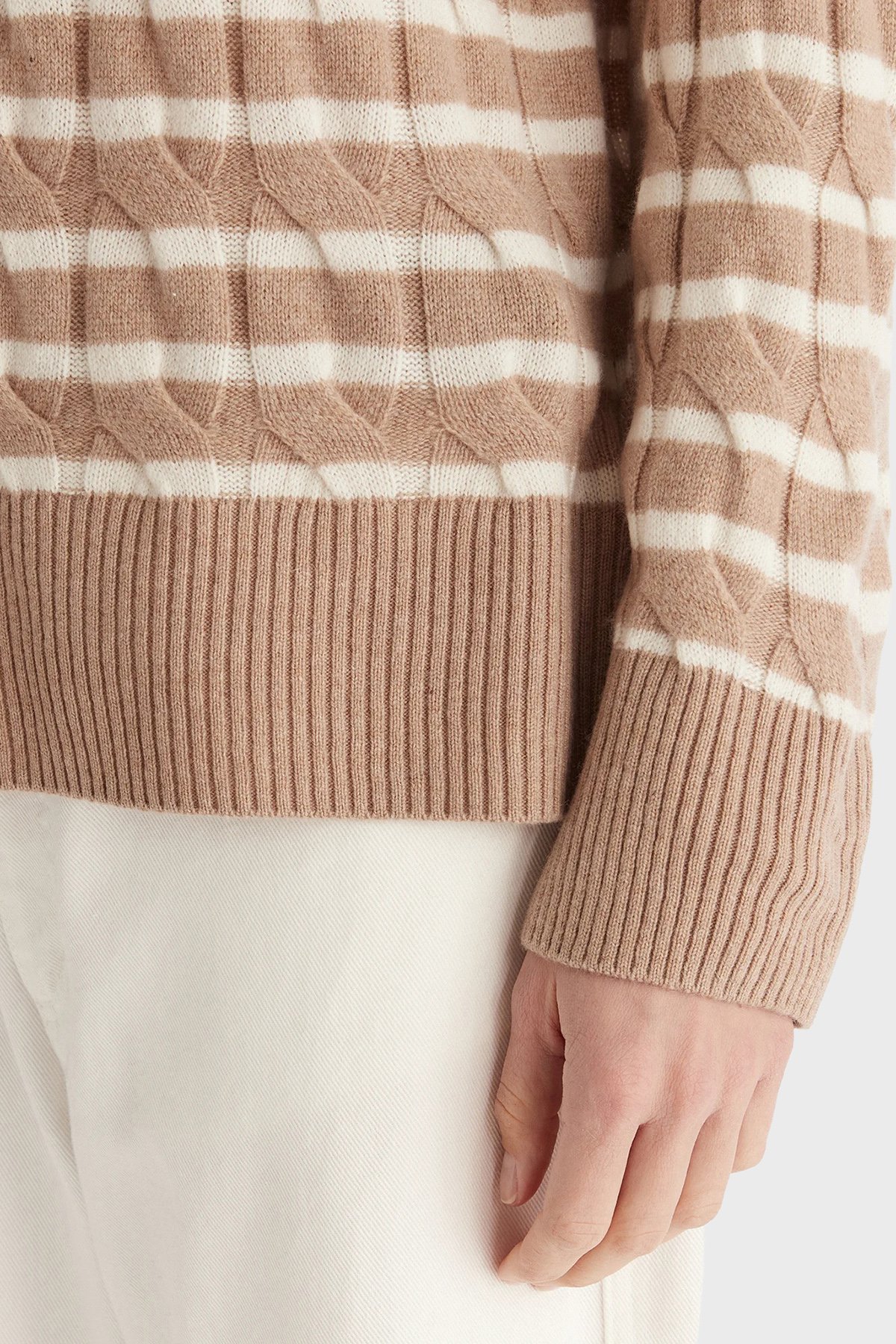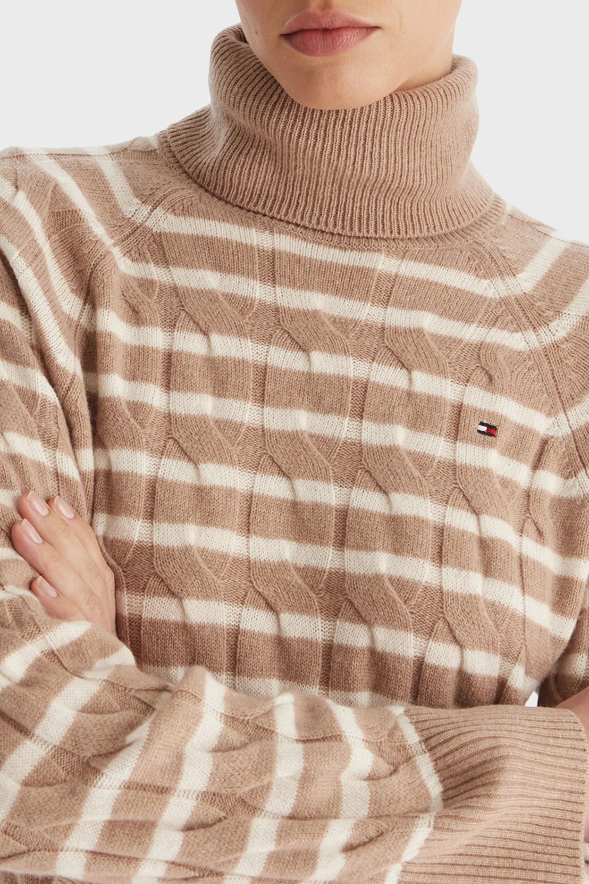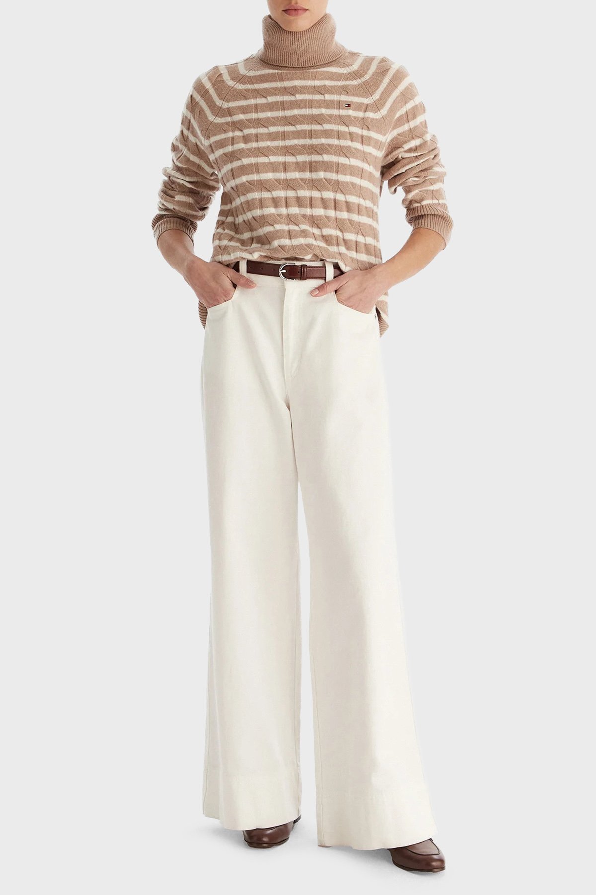 Örgülü Yünlü Relaxed Fit Balıkçı Yaka Bayan Kazak WW0WW46791 0AJ BEJ