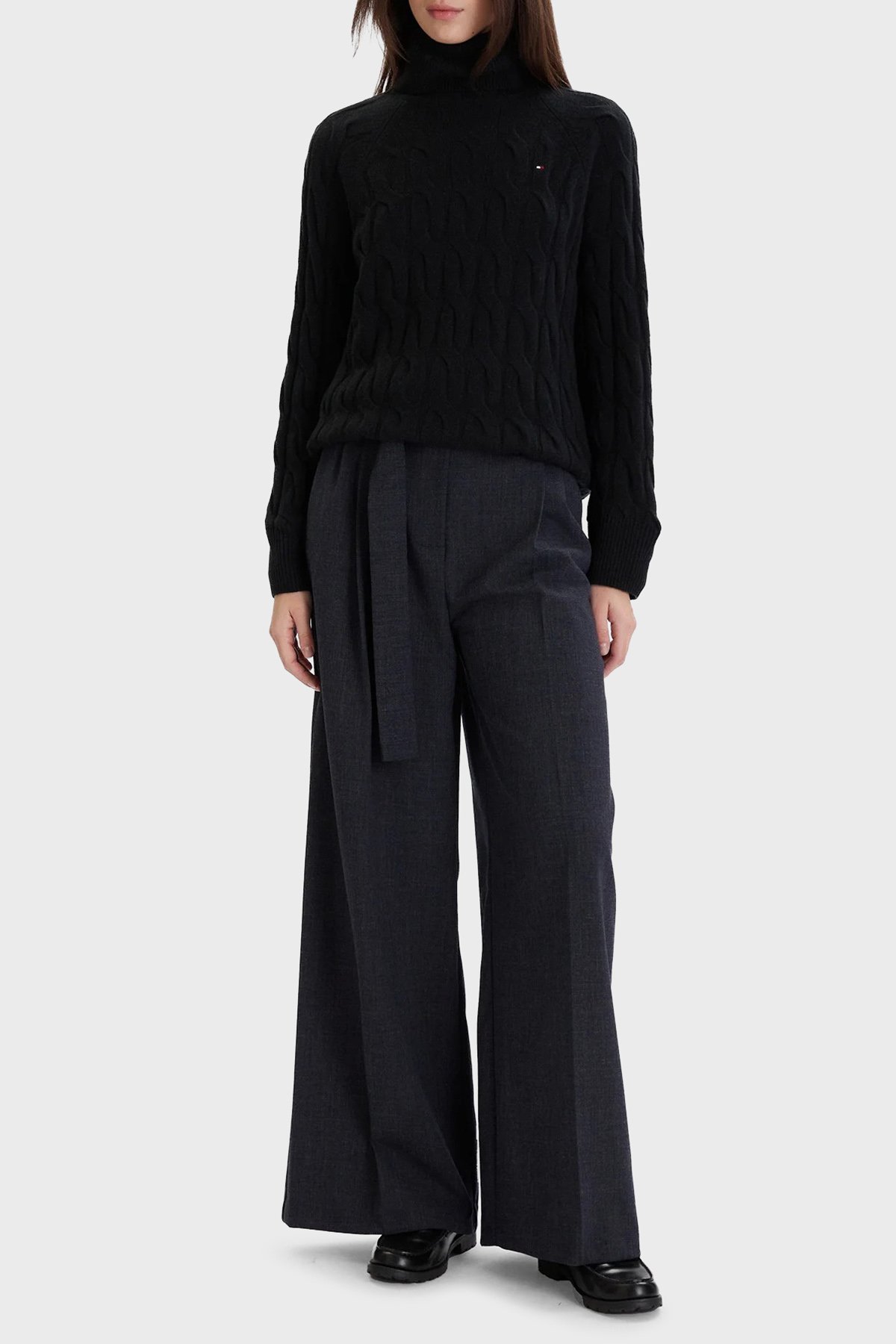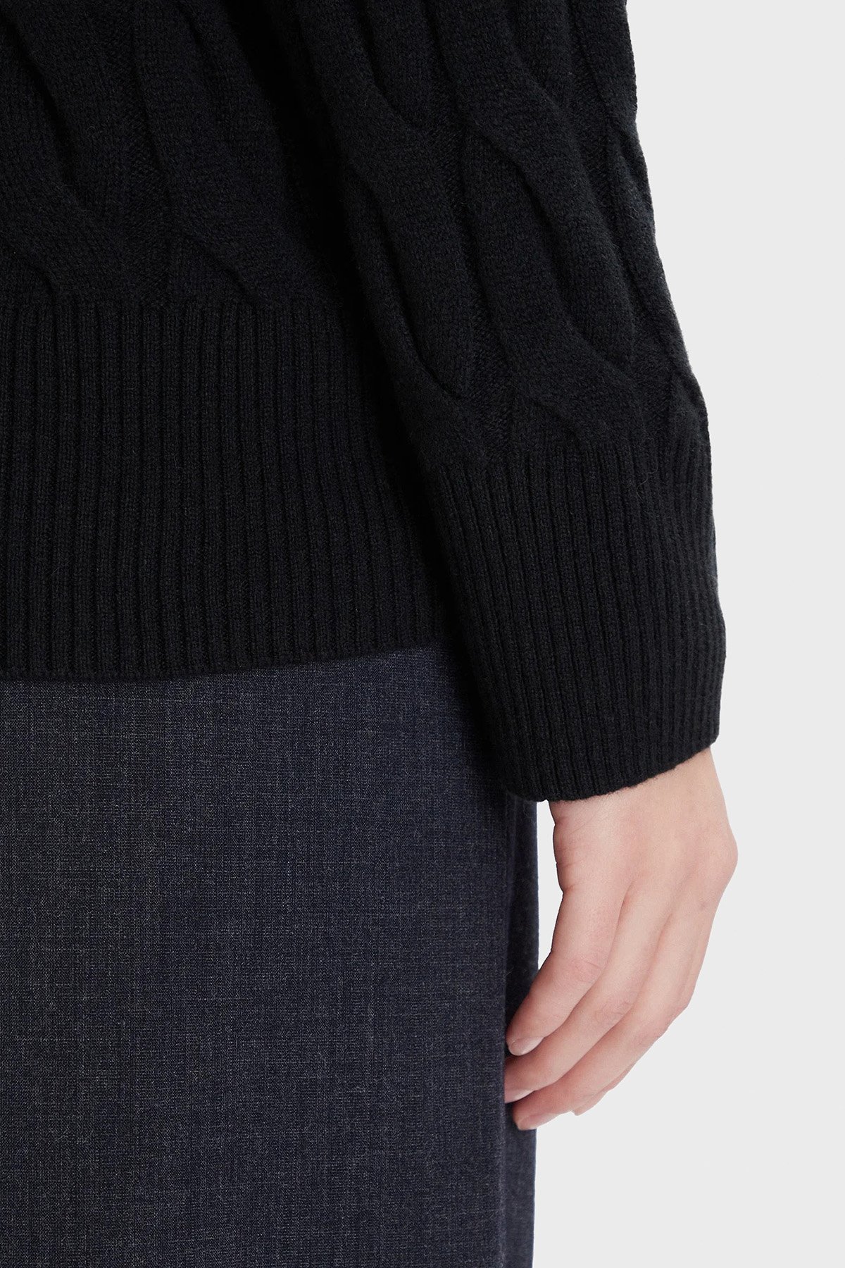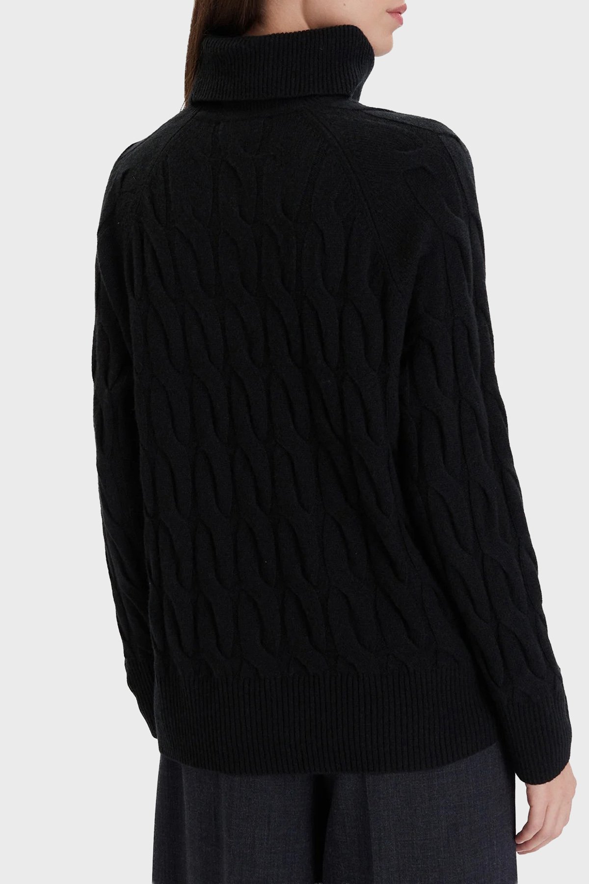 Örgülü Yünlü Relaxed Fit Balıkçı Yaka Bayan Kazak WW0WW46791 BDS SİYAH