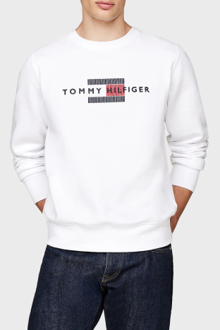 Pamuk Karışımlı Regular Fit Bisiklet Yaka Logolu Erkek Sweat MW0MW35541 YBR BEYAZ