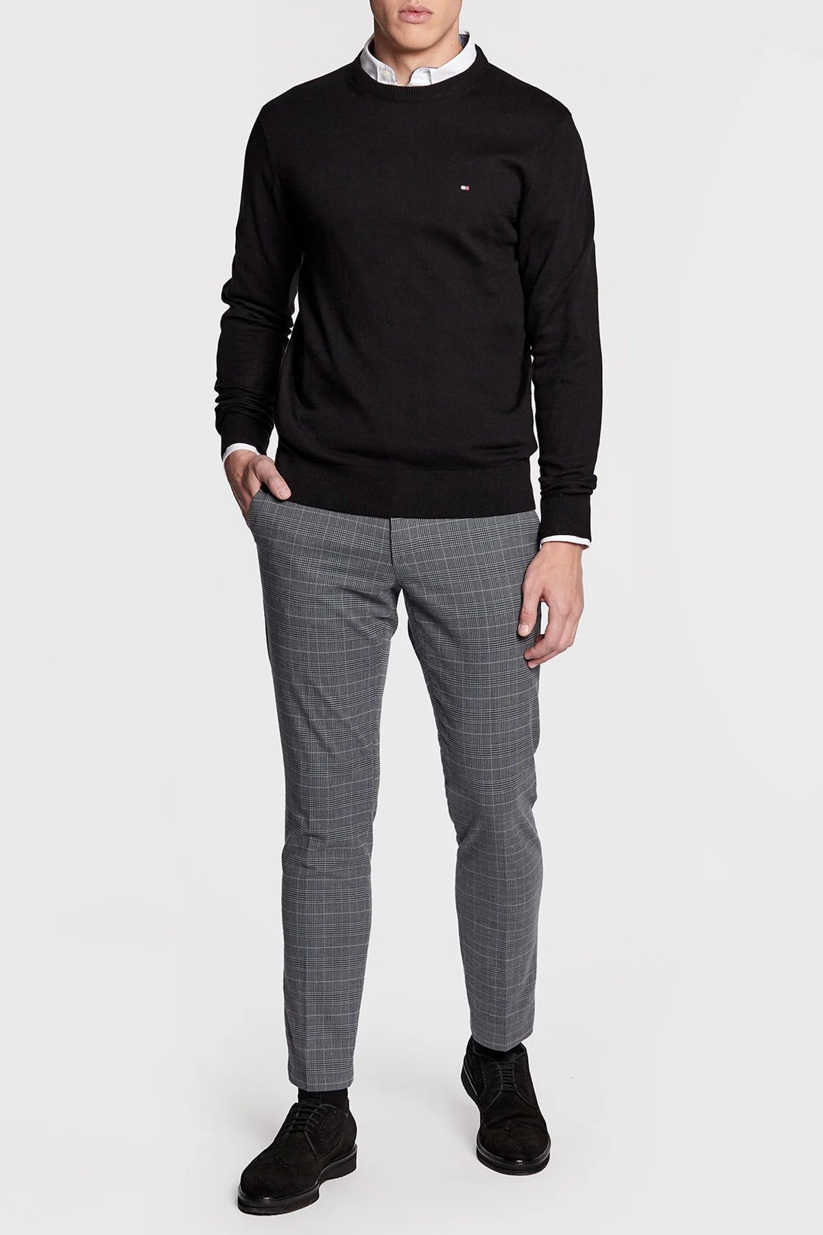 Pamuk ve Kaşmir Karışımlı Regular Fit Bisiklet Yaka Erkek Kazak MW0MW28046 BDS SİYAH