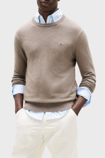 Pamuk ve Kaşmir Karışımlı Regular Fit Bisiklet Yaka Erkek Kazak MW0MW28046 HI3 KAHVE