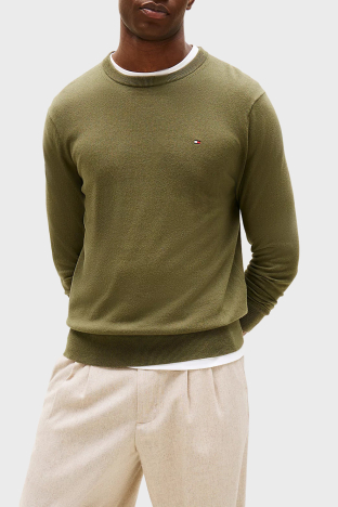 Pamuk ve Kaşmir Karışımlı Regular Fit Bisiklet Yaka Erkek Kazak MW0MW28046 MT1 YEŞİL