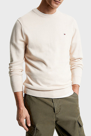 Pamuk ve Kaşmir Karışımlı Regular Fit Bisiklet Yaka Kazak Erkek Sweat MW0MW28046 ABH BEJ