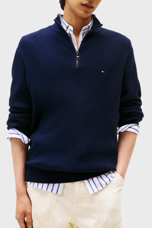 Pamuk ve Kaşmir Karışımlı Regular Fit Dik Yaka Erkek Kazak MW0MW40448 DW5 LACİVERT