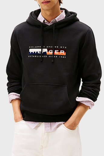 Pamuklu Regular Fit Baskılı Kapüşon Yaka Erkek Sweat MW0MW40041 BDS SİYAH