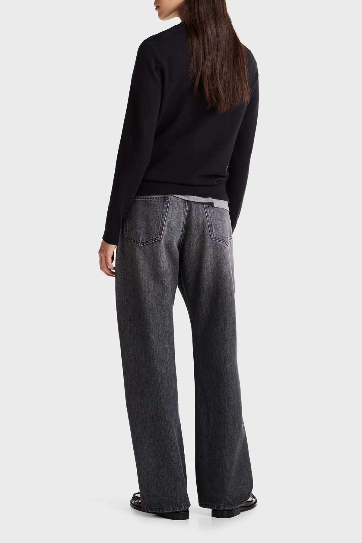 Pamuklu Regular Fit Bisiklet Yaka Bayan Kazak WW0WW44984 BDS SİYAH