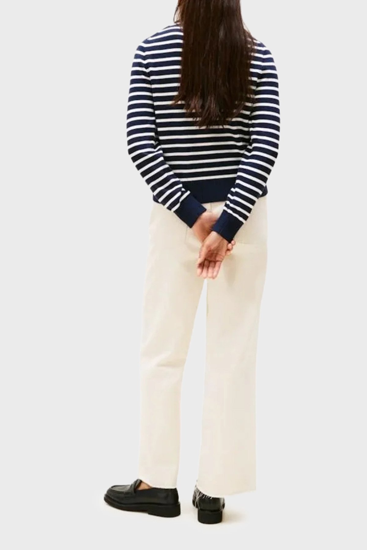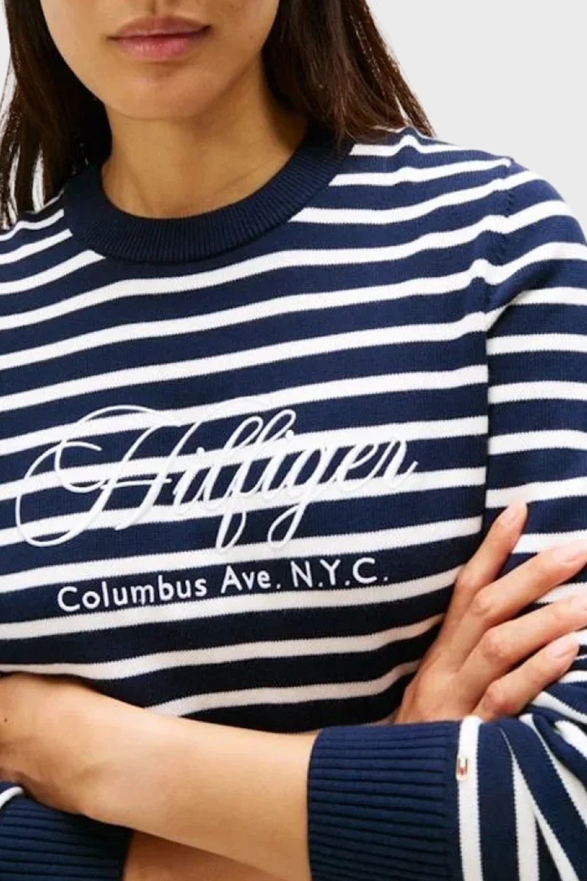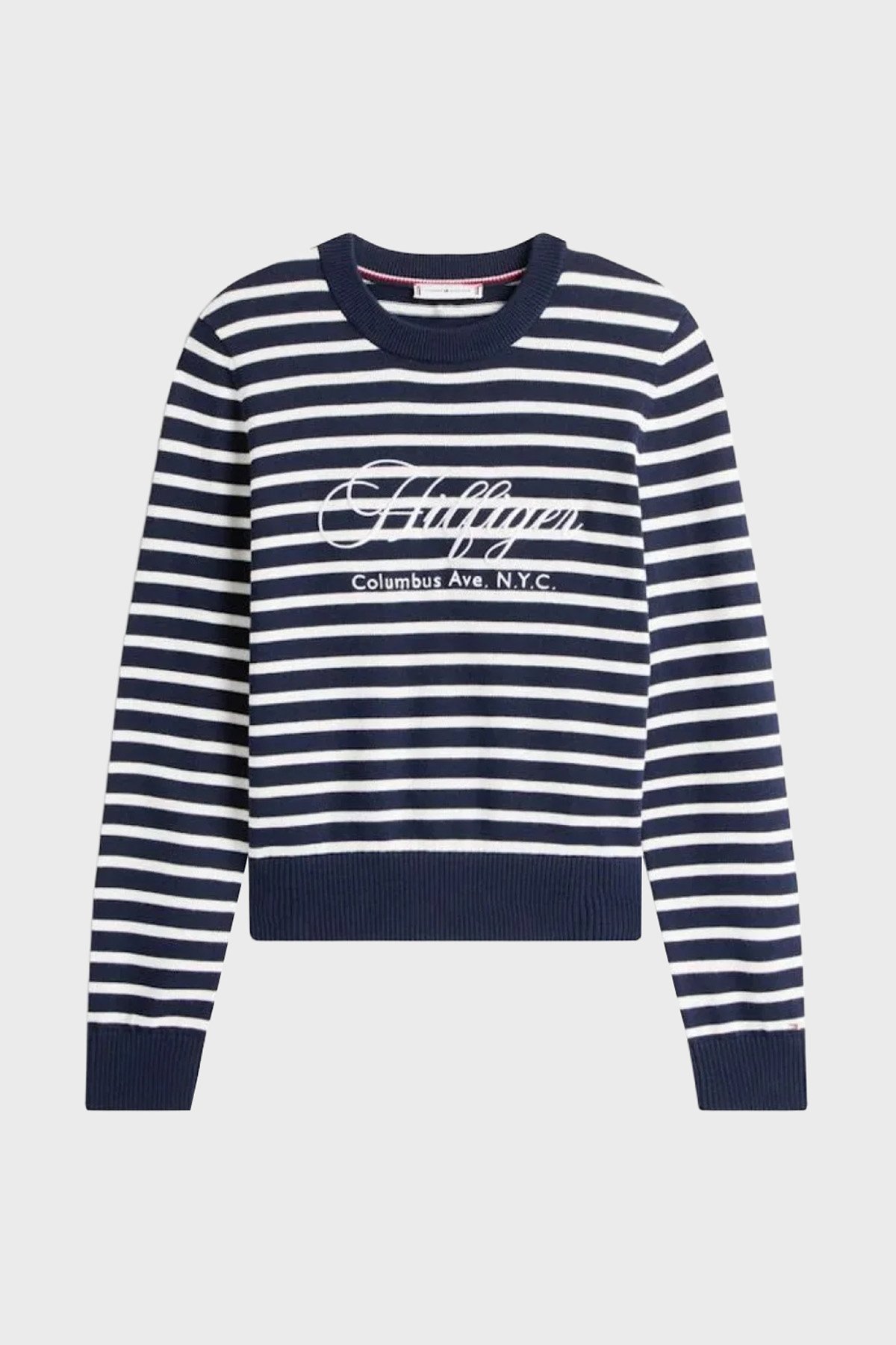 Pamuklu Regular Fit Bisiklet Yaka Çizgili Bayan Kazak WW0WW47304 0BI LACİVERT