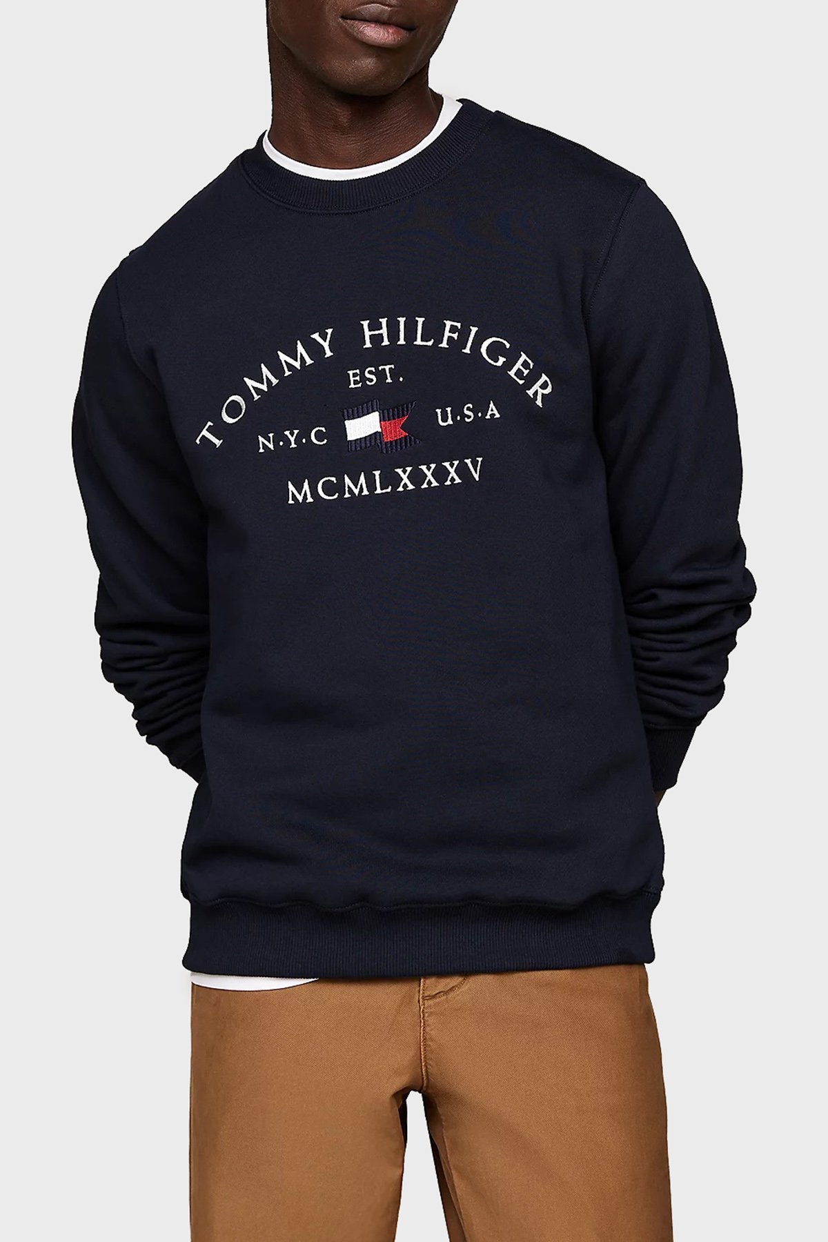 Pamuklu Regular Fit Bisiklet Yaka Logo Nakışlı Erkek Sweat MW0MW35526 DW5 LACİVERT
