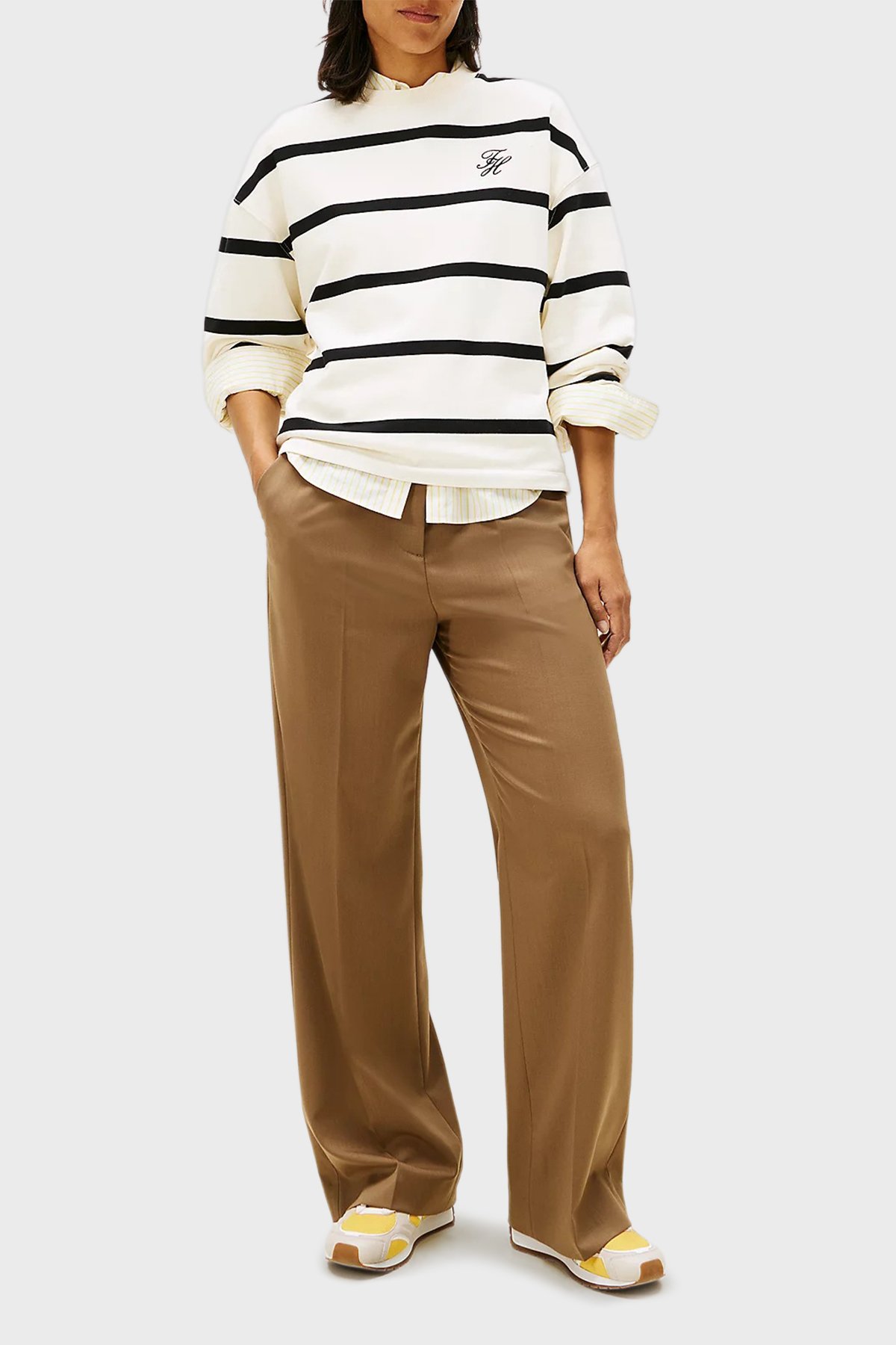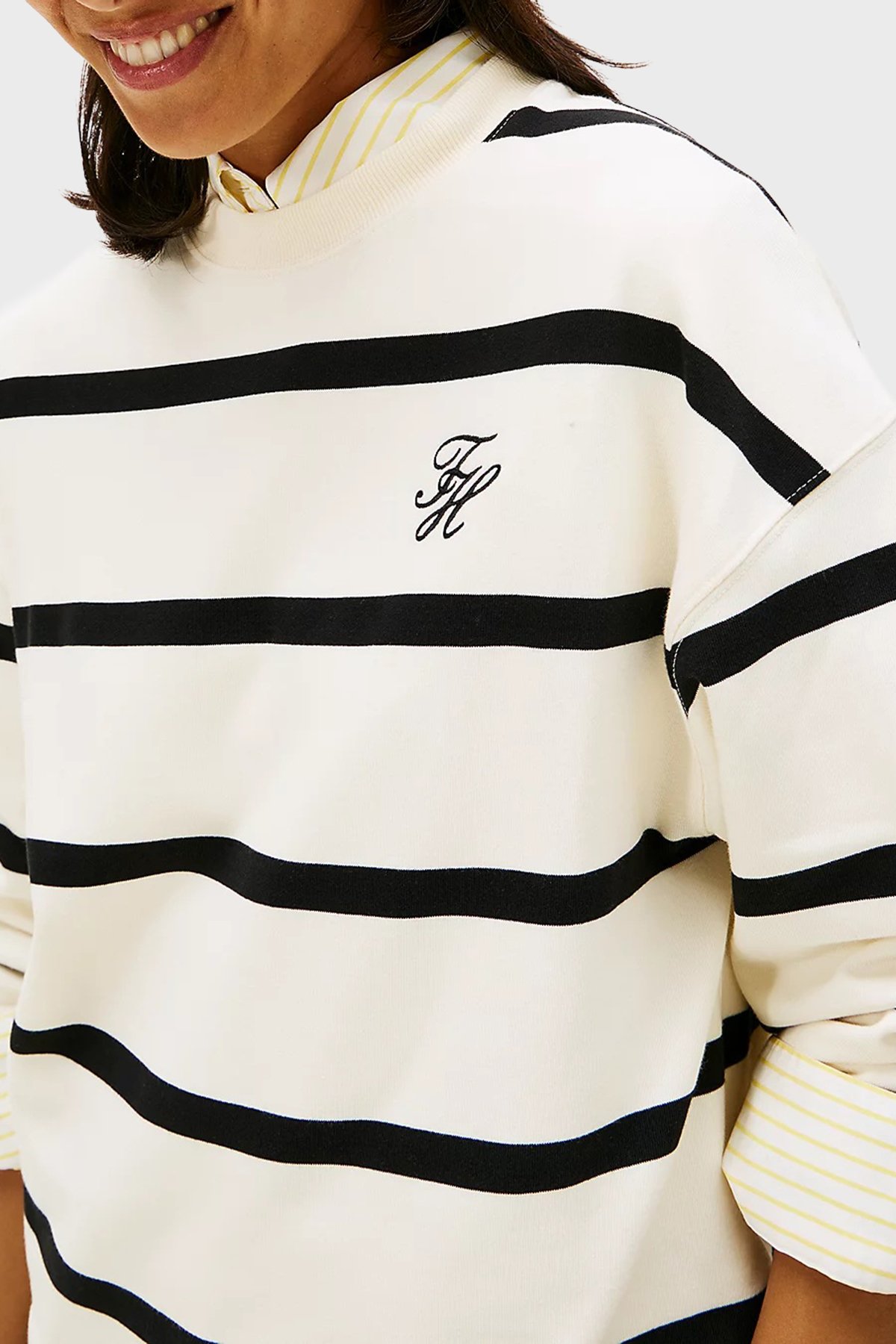 Pamuklu Regular Fit Çizgili Bisiklet Yaka Bayan Sweat WW0WW48431 0AB BEJ
