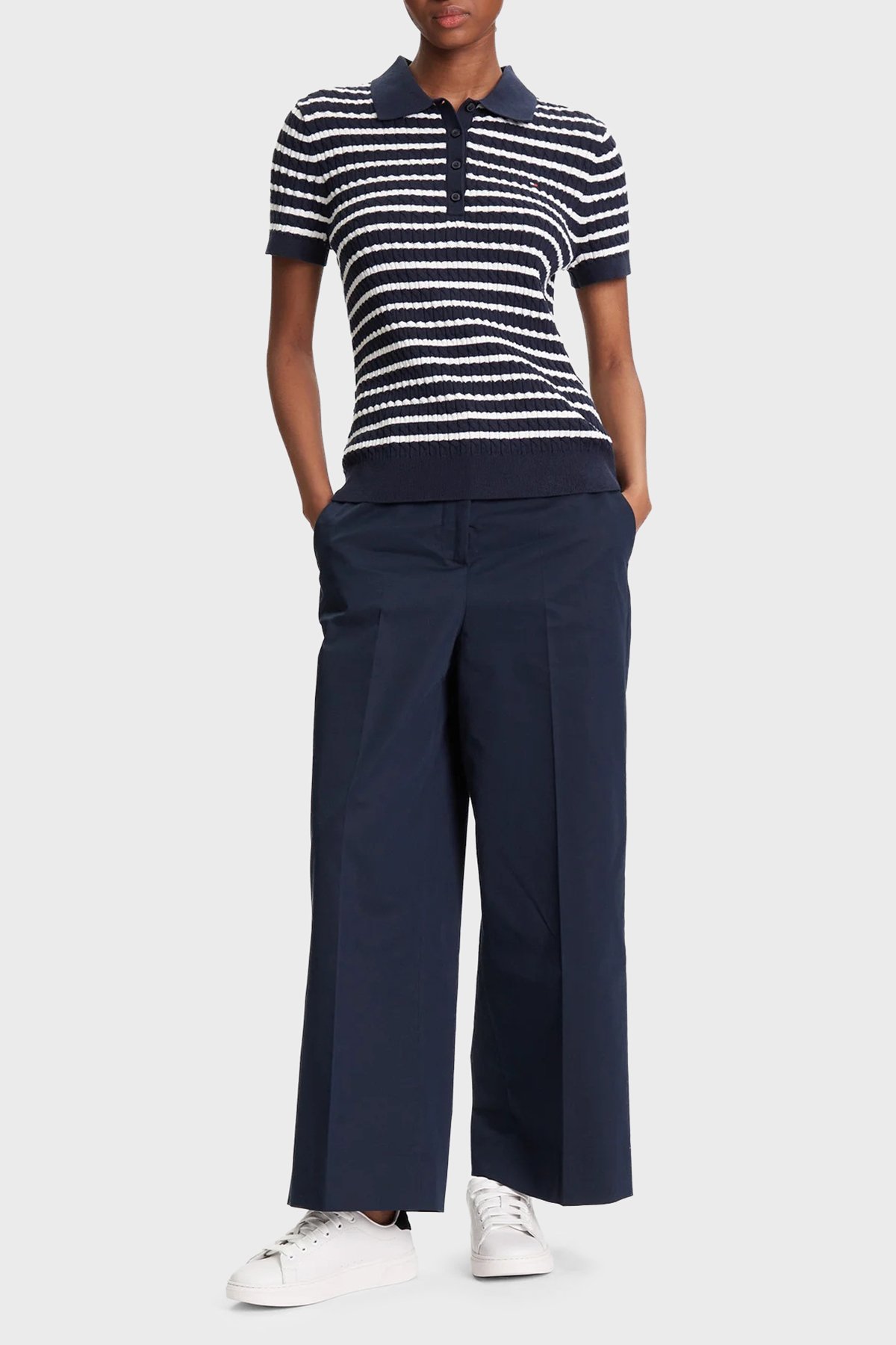 Pamuklu Regular Fit Düğmeli Polo Yaka Çizgili Kısa Kollu Bayan Kazak WW0WW41474 0BB LACİVERT