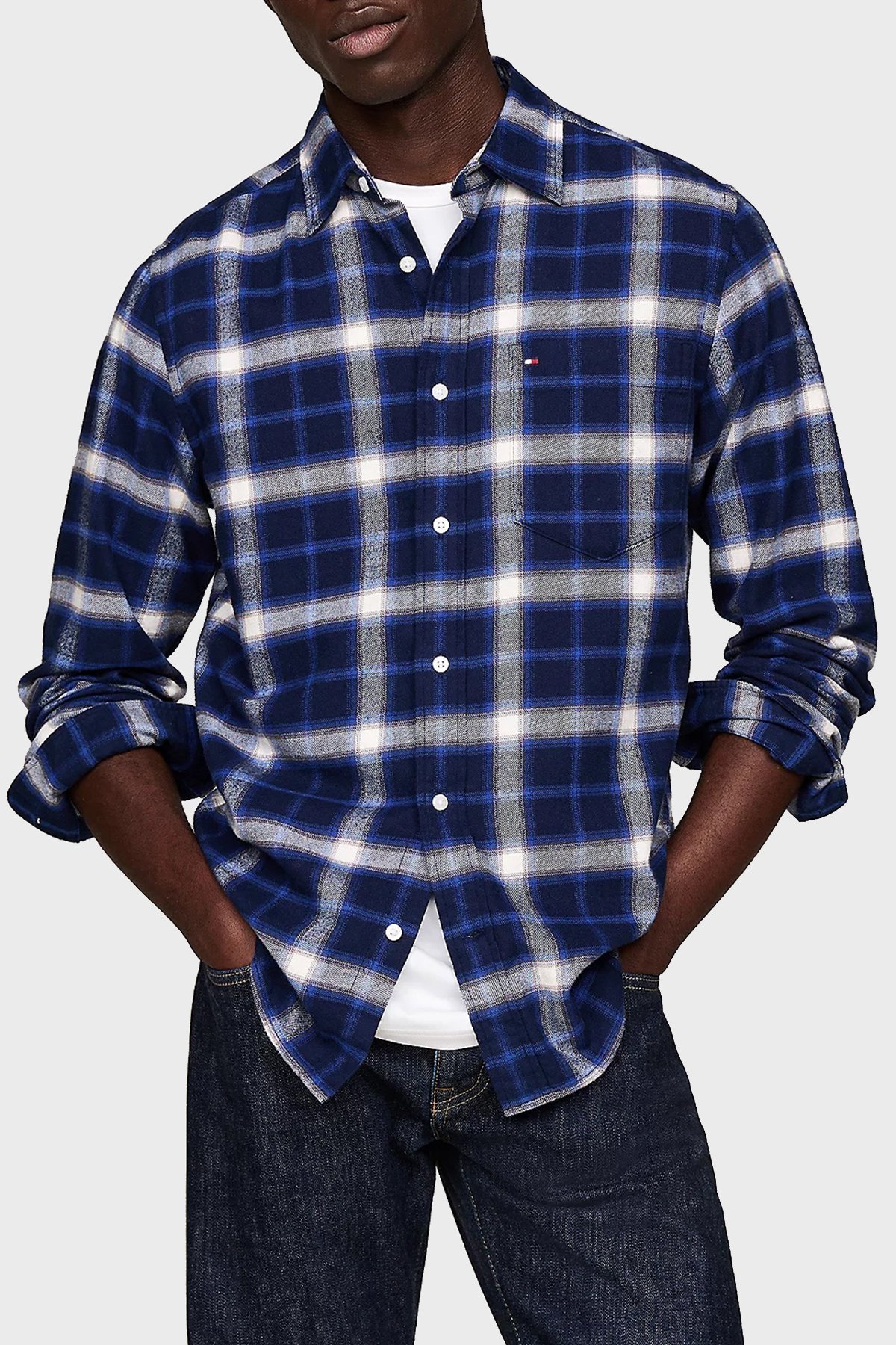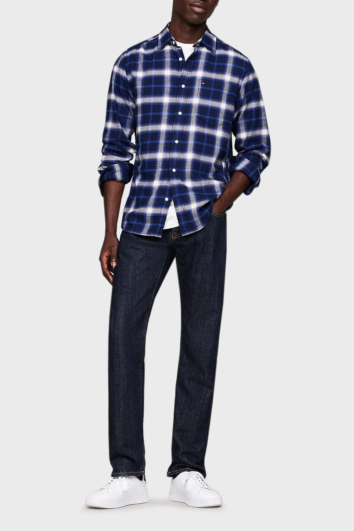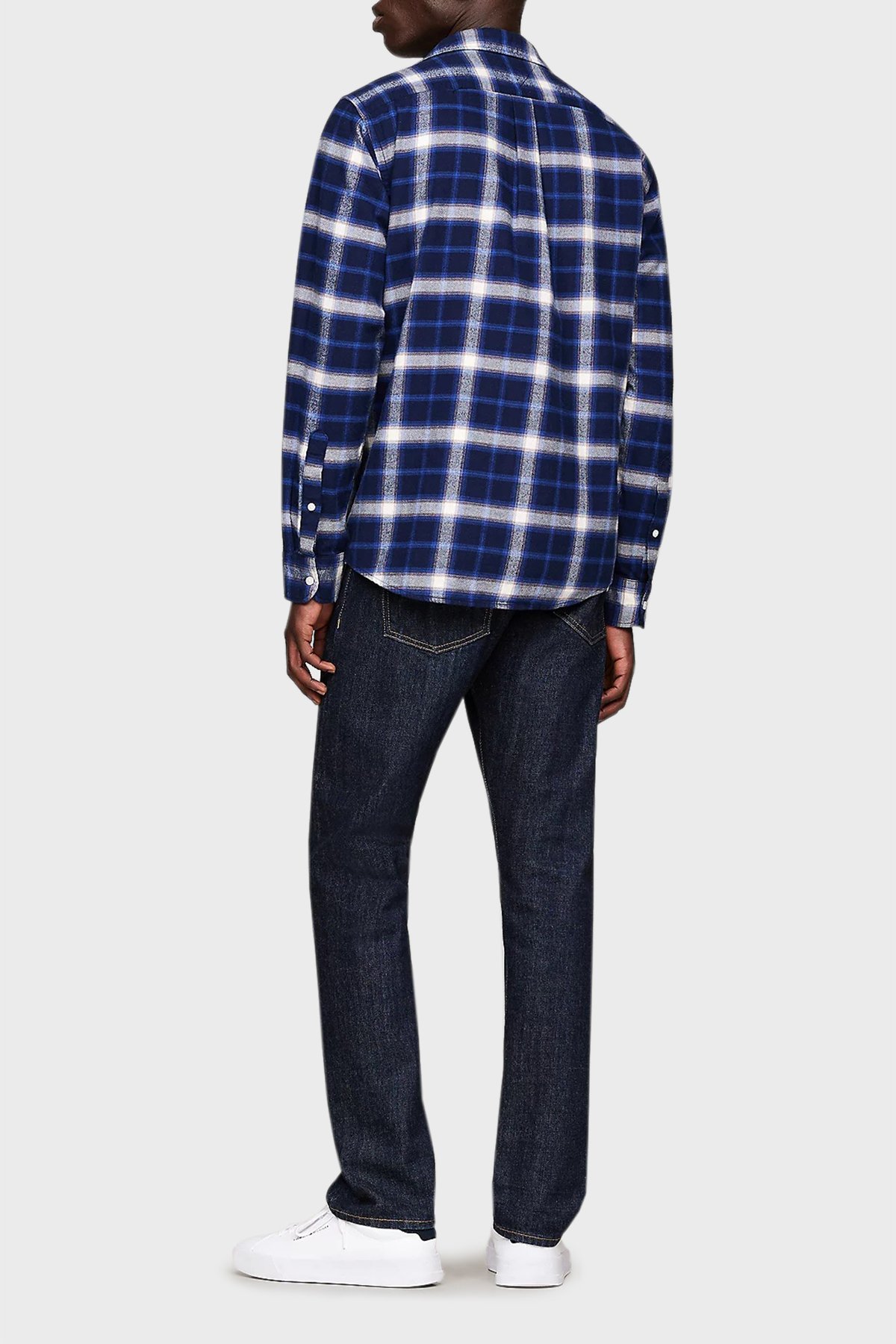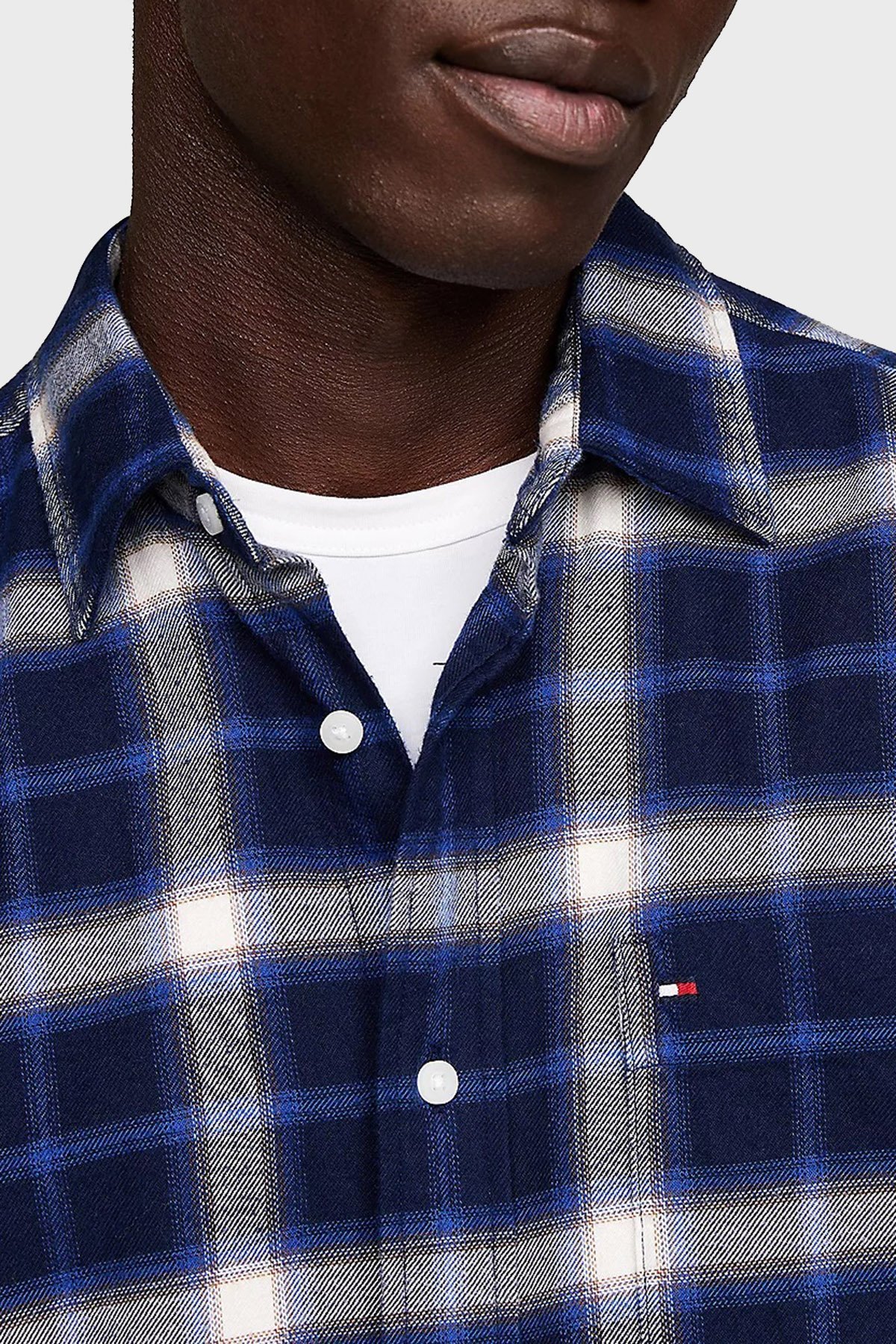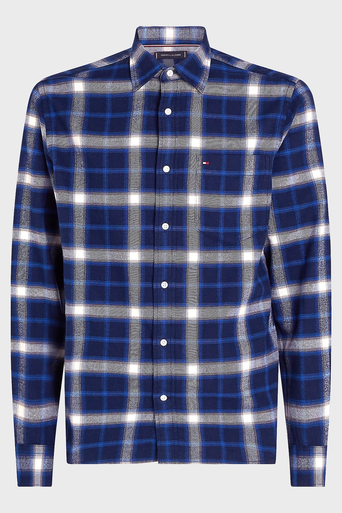 Pamuklu Regular Fit Ekoseli Erkek Gömlek MW0MW36842 0MS LACİVERT-BEYAZ