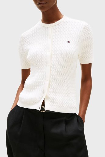 Pamuklu Regular Fit Kısa Kollu Bisiklet Yaka Kısa Örgü Bayan Hırka WW0WW45707 YA8 BEYAZ