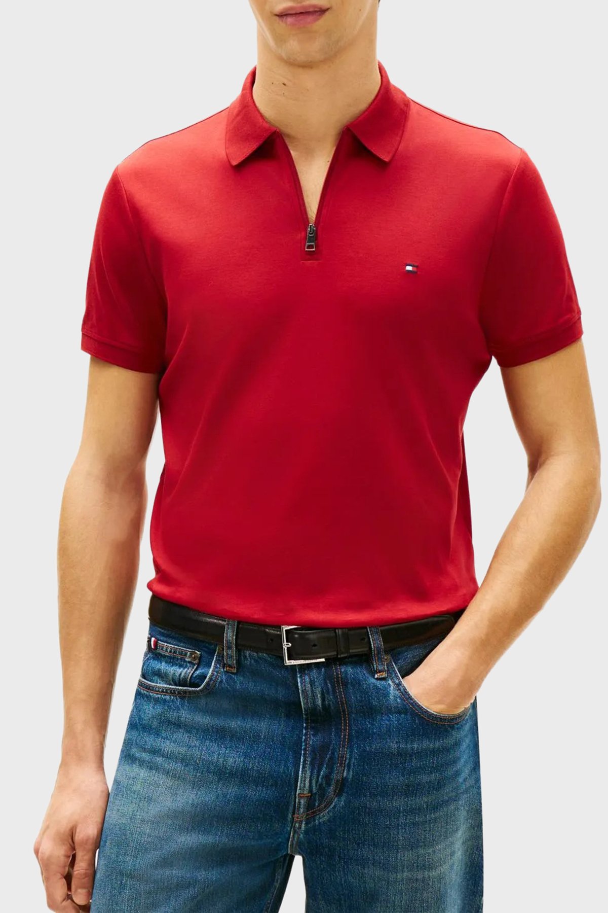 Pamuklu Regular Fit Logolu Fermuarlı Erkek Polo Yaka T Shirt MW0MW42758 XIT KIRMIZI