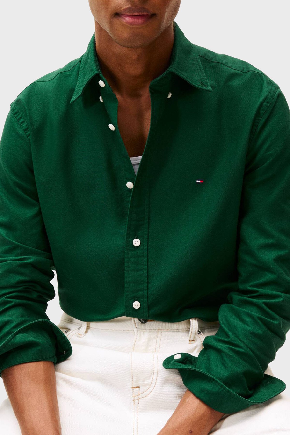 Pamuklu Regular Fit Logolu Uzun Kollu Erkek Gömlek MW0MW35774 0IA YEŞİL
