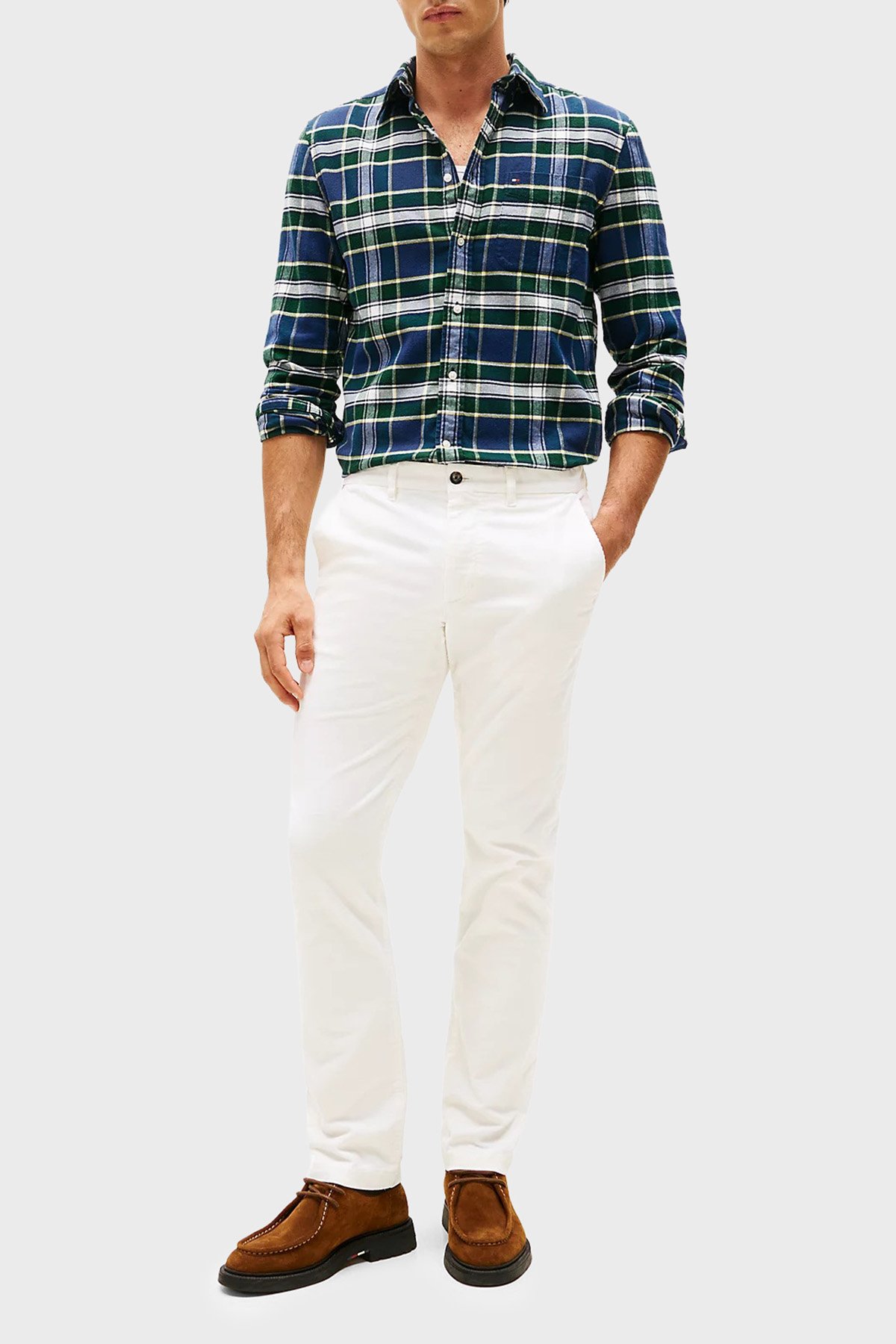 Pamuklu Regular Fit Uzun Kollu Ekoseli Erkek Gömlek MW0MW40473 0N5 YEŞİL-BEYAZ