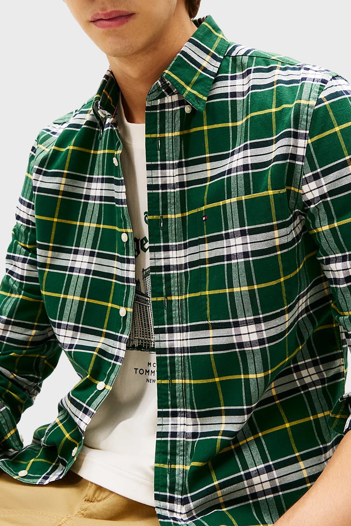 Pamuklu Regular Fit Uzun Kollu Ekoseli Erkek Gömlek MW0MW40894 0N5 YEŞİL-BEYAZ