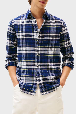 Pamuklu Regular Fit Uzun Kollu Erkek Gömlek MW0MW41345 0MS LACİVERT-BEYAZ