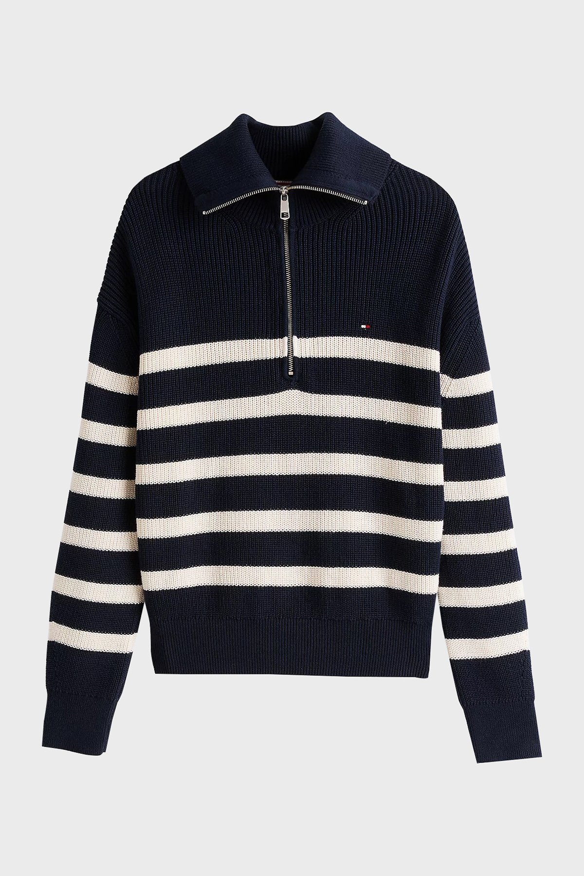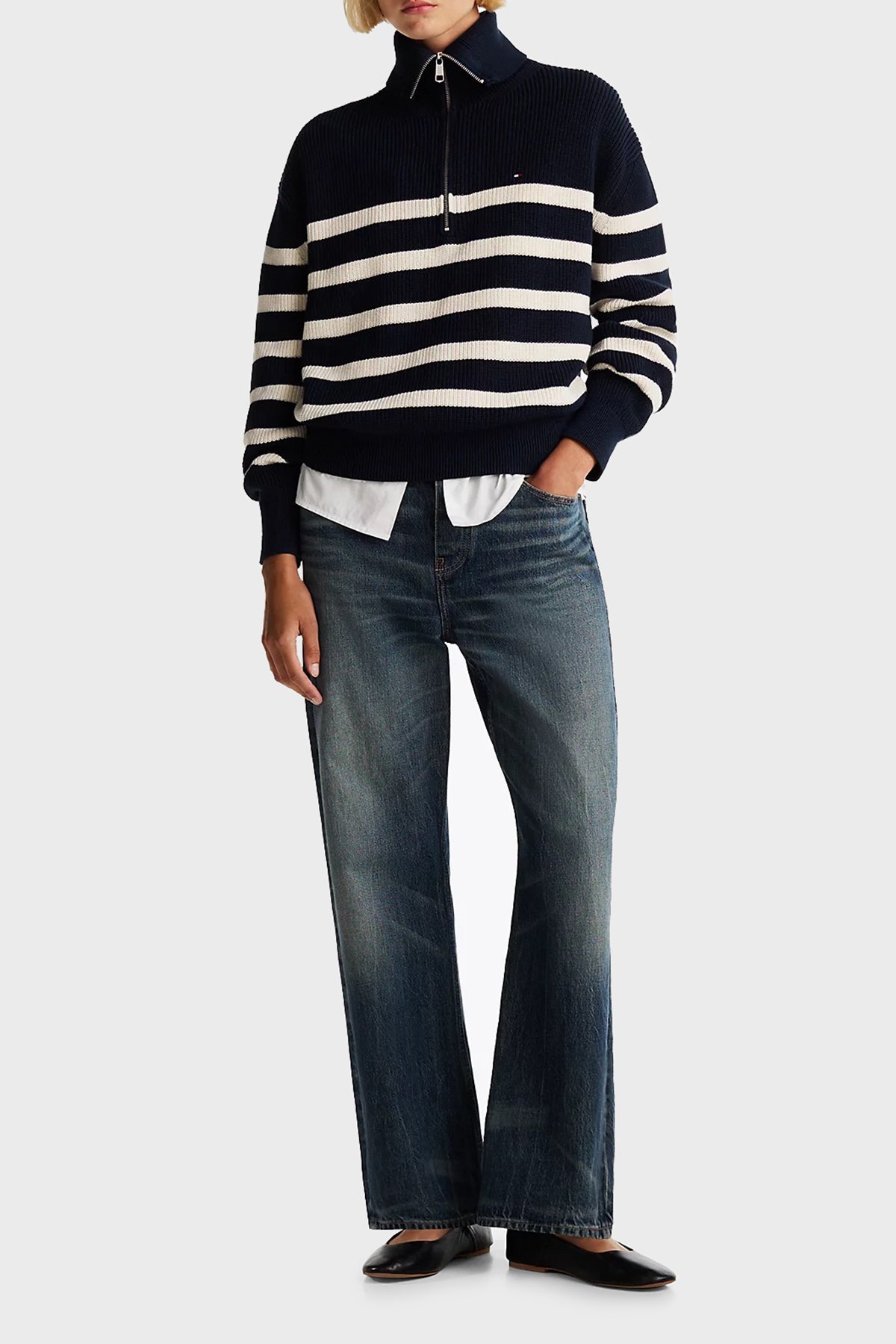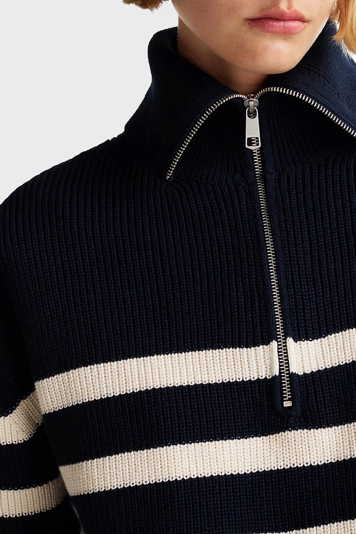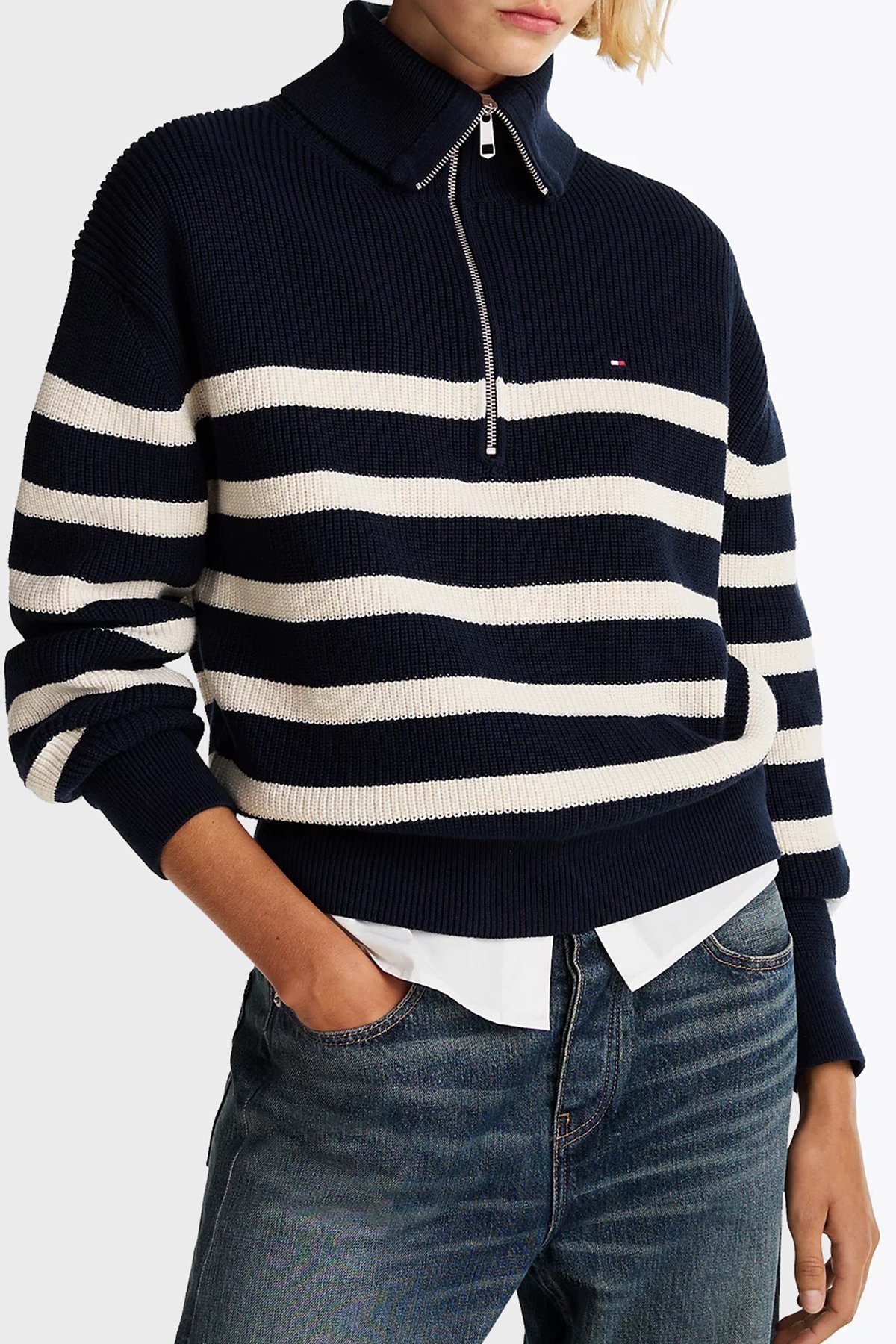 Pamuklu Regular Fit Yarım Fermuarlı Balıkçı Yaka Bayan Kazak WW0WW42141 0HB LACİVERT-BEJ