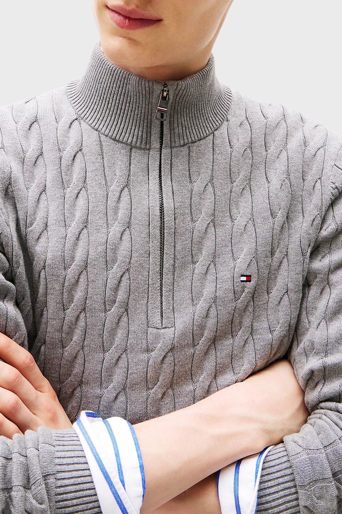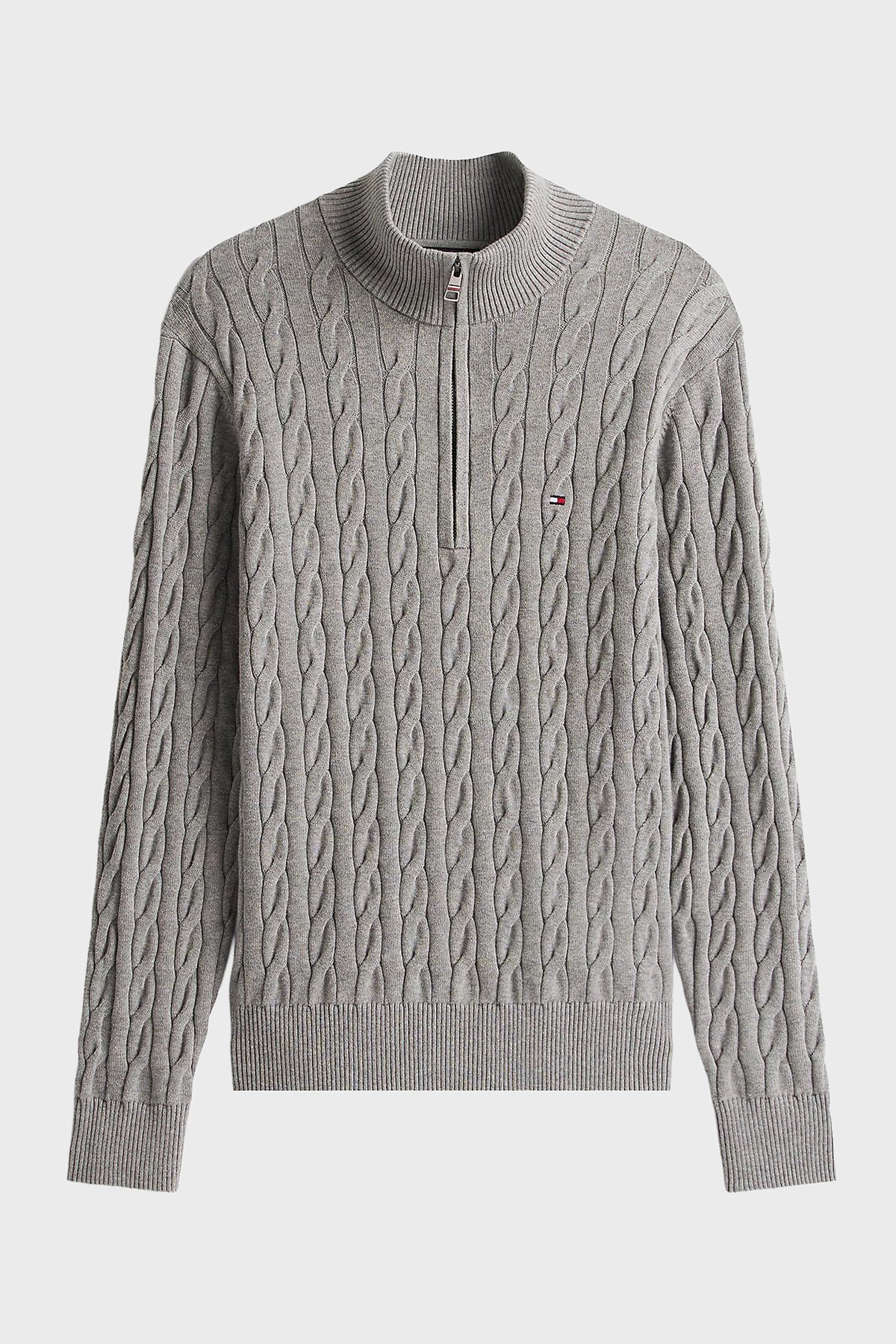 Pamuklu Regular Fit Yarım Fermuarlı Dik Yaka Erkek Kazak MW0MW36532 P91 GRİ