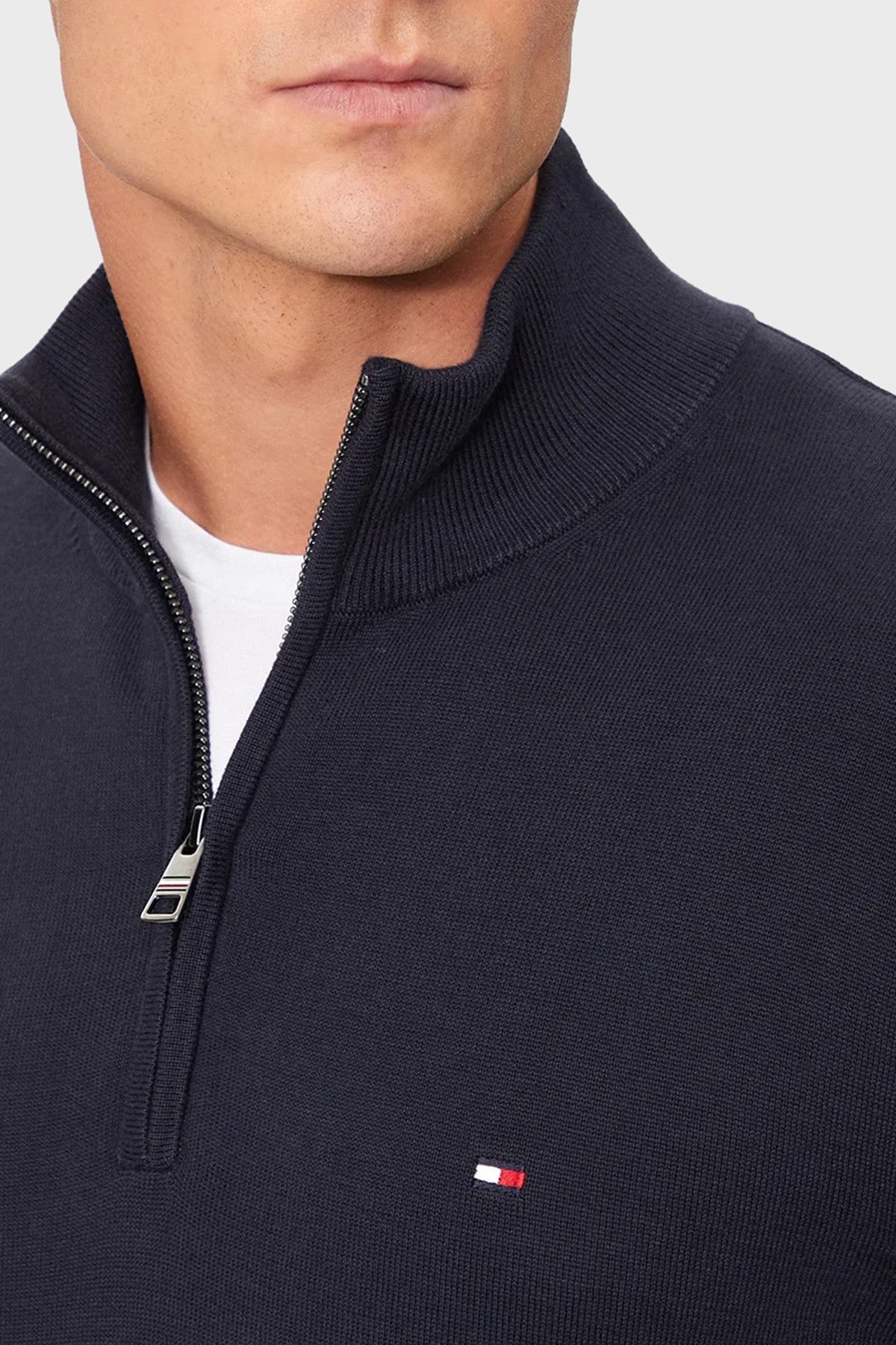 Pamuklu Regular Fit Yarım Fermuarlı Dik Yaka Erkek Kazak MW0MW37331 DW5 LACİVERT