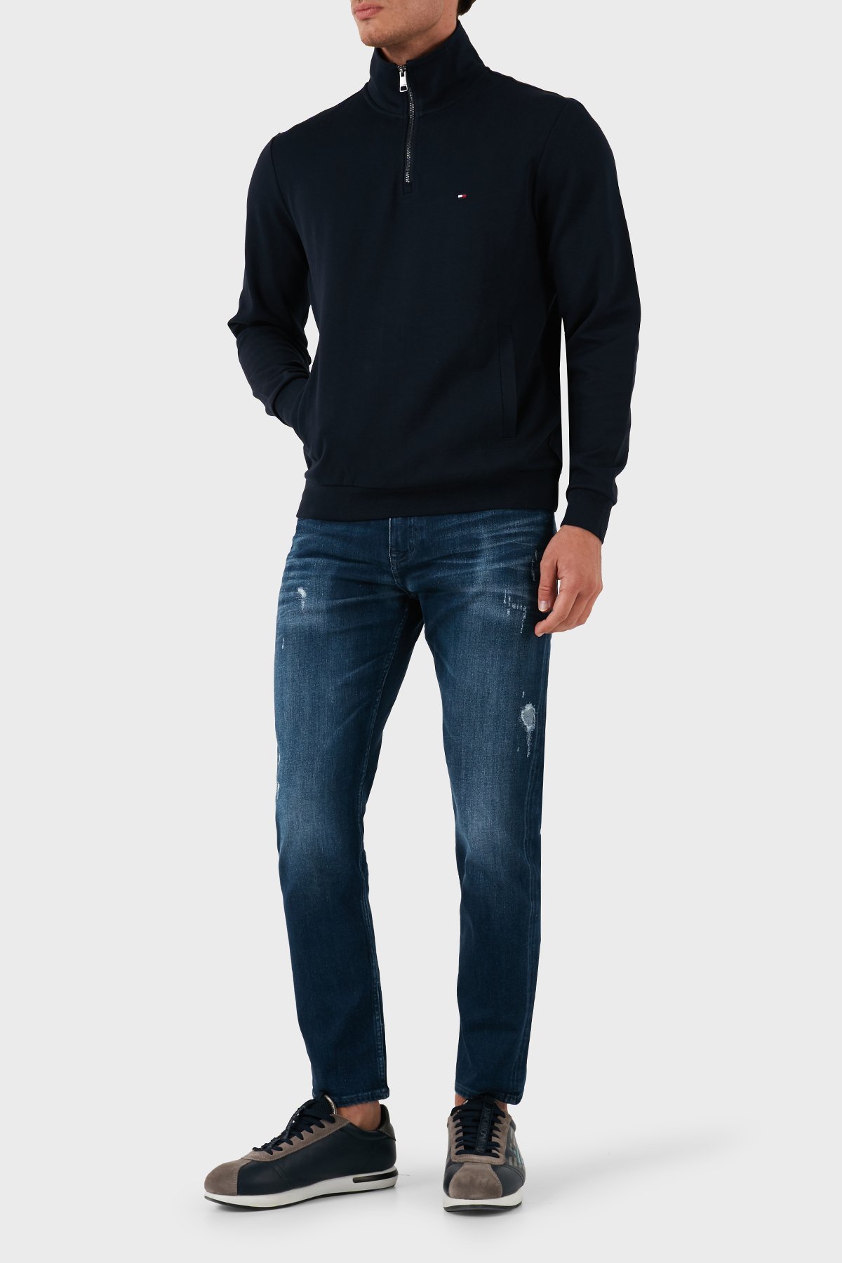 Pamuklu Regular Fit Yarım Fermuarlı Dik Yaka Erkek Sweat MW0MW36510 DW5 LACİVERT