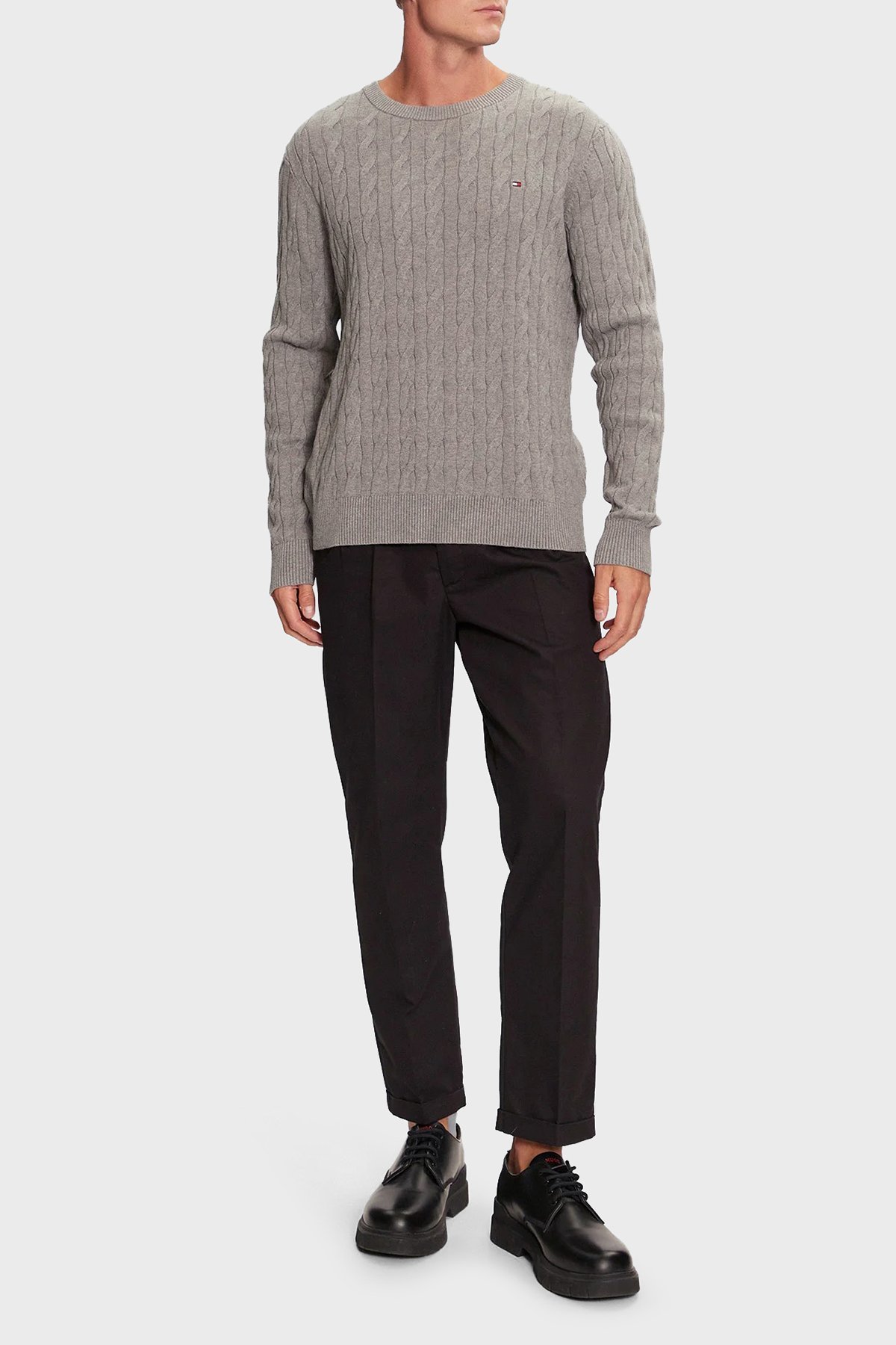 Pamuklu Relaxed Fit Bisiklet Yaka Örme Erkek Kazak MW0MW33132 P91 GRİ