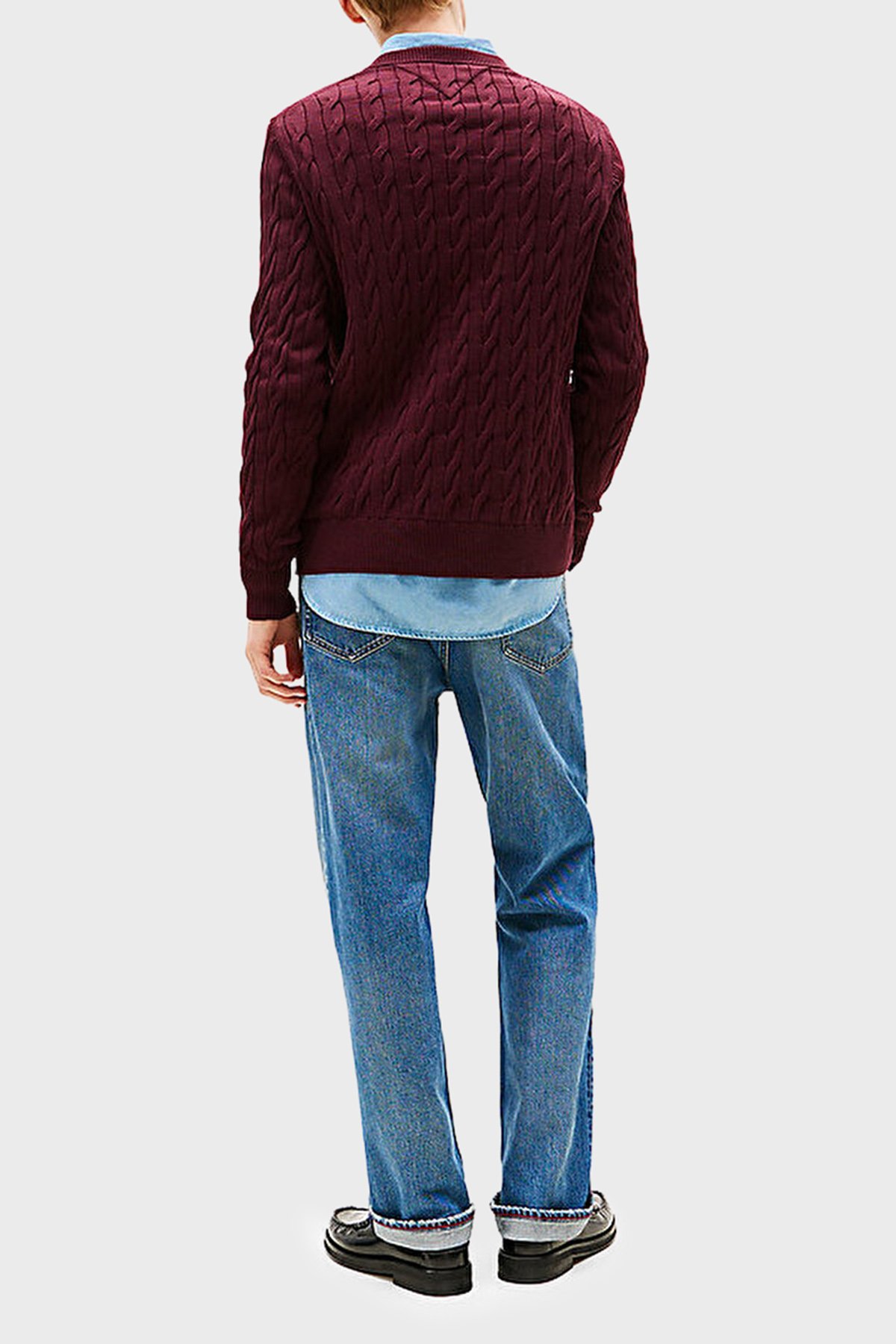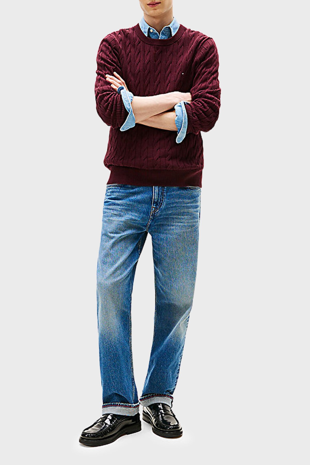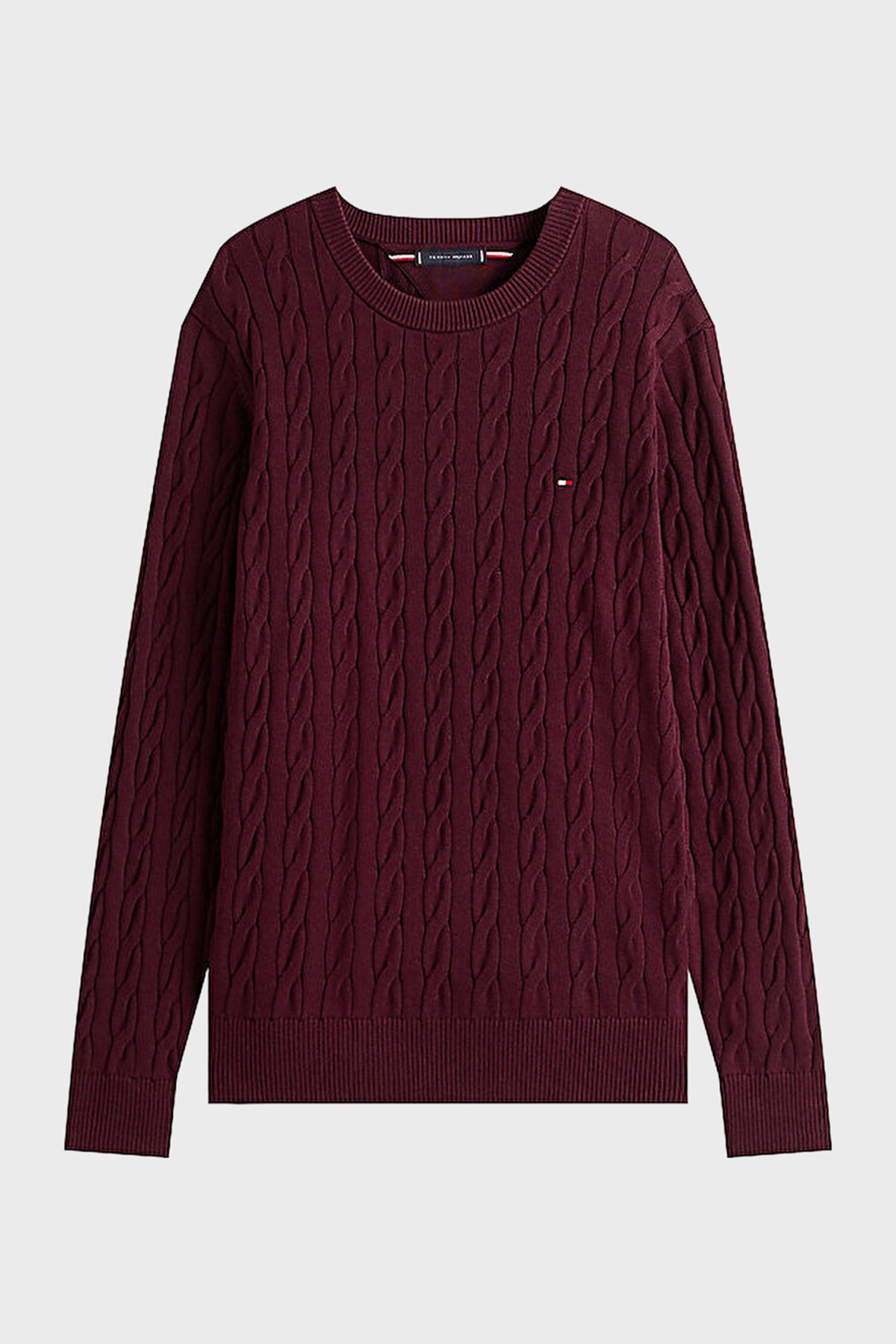 Pamuklu Relaxed Fit Örgülü Bisiklet Yaka Erkek Kazak MW0MW33132 XIH BORDO